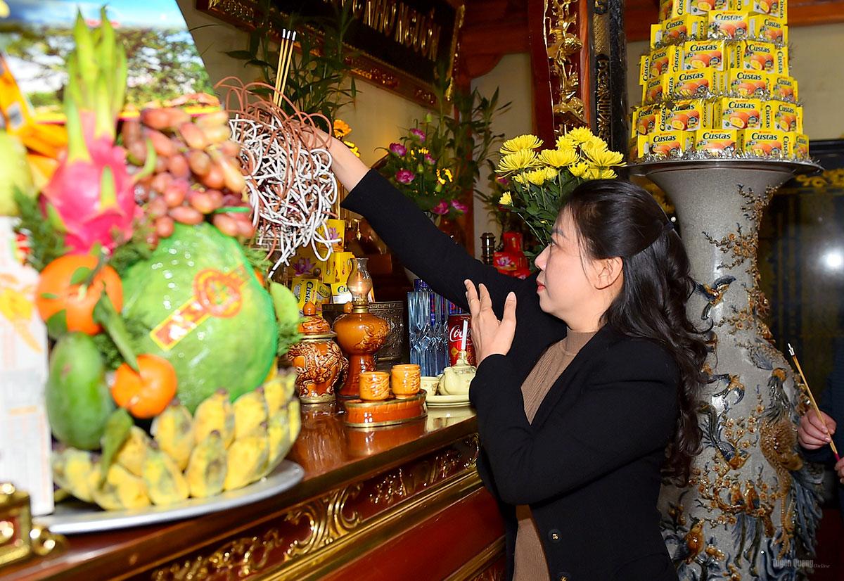 Đồng chí Phó Bí thư Thường trực Tỉnh ủy Lê Thị Kim Dung thỉnh chuông dâng lễ tại Đền thờ các Anh hùng liệt sỹ xã Minh Tân.