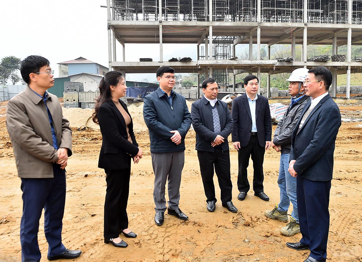 Đồng chí Phó Bí thư Thường trực Tỉnh ủy Lê Thị Kim Dung kiểm tra công trình xây dựng trường Phổ thông Nội trú liên cấp Tiểu học và Trung học cơ sở Minh Tân.