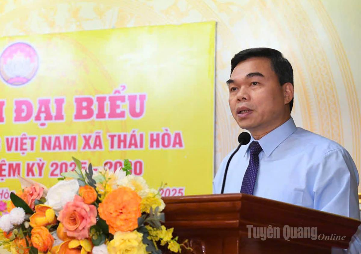 Phát biểu chỉ đạo tại Đại hội, đồng chí Ma Thế Hồng đã ghi nhận và biểu dương những kết quả mà MTTQ xã Thái Hòa đã đạt được trong nhiệm kỳ qua. Đồng thời đề nghị MTTQ xã tiếp tục tăng cường củng cố, phát huy khối đại đoàn kết toàn dân tộc, đẩy mạnh quán triệt và thực hiện hiệu quả chủ trương của Đảng, chính sách, pháp luật của Nhà nước; phát huy sức mạnh của khối đại đoàn kết góp phần giữ vững an ninh chính trị, trật tự an toàn xã hội trên địa bàn. Cùng với đó, tiếp tục đổi mới mạnh mẽ nội dung, phương thức hoạt động của MTTQ và các tổ chức chính trị - xã hội theo hướng tập trung về cơ sở hoạt động thực chất, hiệu quả; chú trọng xây dựng và nhân rộng các mô hình tốt, các làm hay, điển hình tiên tiến; tuyên truyền, vận động, tập hợp các tầng lớp nhân dân tích cực tham gia các cuộc vận động, các phong trào thi đua góp phần thực hiện thắng lợi các nhiệm vụ, mục tiêu đề ra. Đồng thời MTTQ xã cần phát huy vai trò giám sát, phản biện xã hội theo hướng có trọng tâm, trọng điểm, những vấn đề liên quan trực tiếp đến quyền, lợi ích hợp pháp, chính đáng của nhân dân; tăng cường tổ chức hoạt động đối thoại giữa người đứng dầu cấp ủy, chính quyền với cán bộ Mặt trận và nhân dân. Chủ động tham mưu, đề xuất với cấp ủy, chính quyền về những cơ chế, chính sách phù hợp với thực tiễn, giải quyết những vấn đề mà nhân dân mong đợi. Tích cực tham gia thực hiện sắp xếp tổ chức, bộ máy của hệ thống chính trị tinh gọn, hoạt động hiệu lực, hiệu quả, đảm bảo tính thống nhất, phù hợp với điều kiện thực tiễn.
