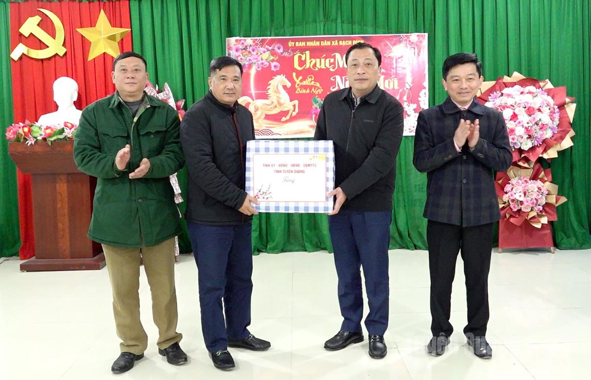Phó Chủ tịch Thường trực HĐND tỉnh Hầu Minh Lợi tặng quà chúc Tết xã Bạch Đích.