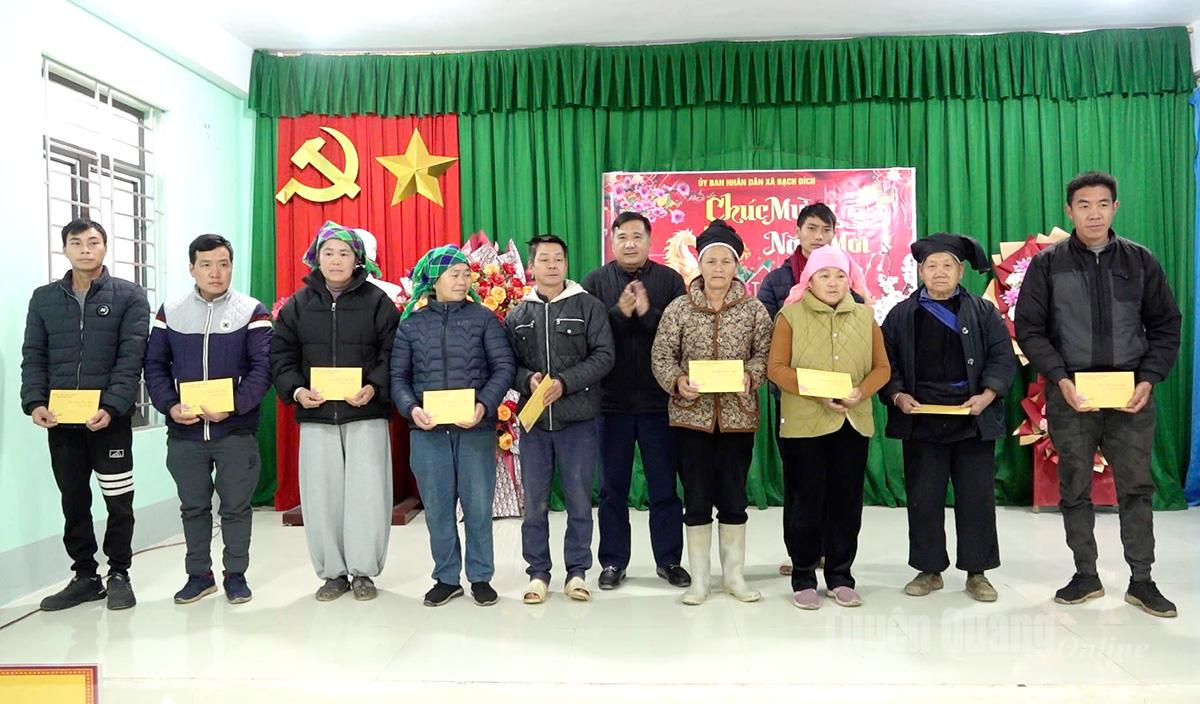 Đồng chí Phó Chủ tịch Thường trực HĐND tỉnh Hầu Minh Lợi tặng quà hộ nghèo trên địa bàn xã Bạch Đích.