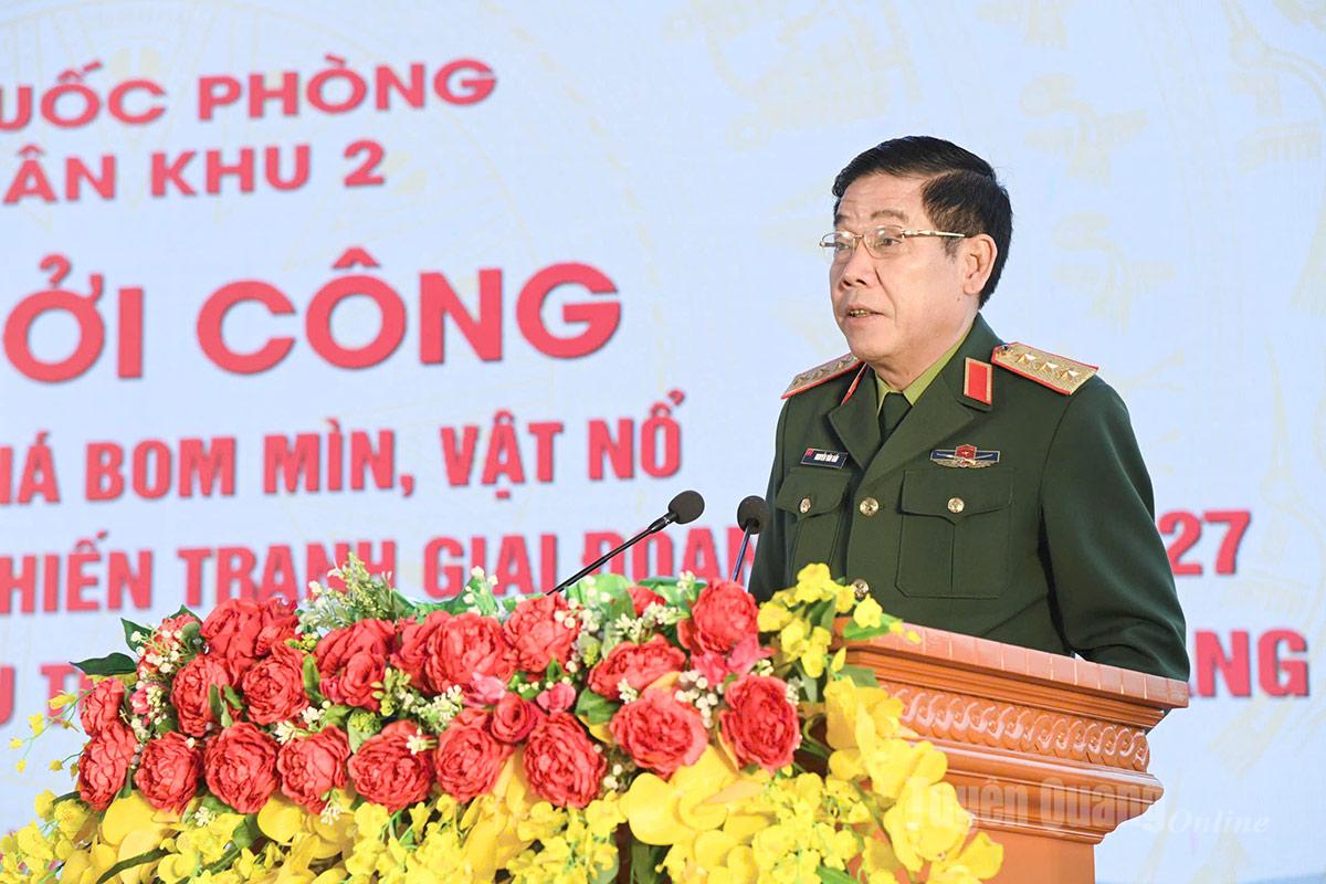 Phát biểu tại lễ khởi công, Thượng tướng Nguyễn Văn Gấu, Thứ trưởng Bộ Quốc phòng khẳng định: Dự án Rà phá bom mìn, vật nổ khắc phục hậu quả sau chiến tranh; tìm kiếm, quy tập hài cốt liệt sĩ, giai đoạn 2025 - 2027 tại Quân khu 2 có ý nghĩa đặc biệt quan trọng, được Chính phủ lựa chọn tổ chức lễ khởi công cùng với các công trình, dự án trọng điểm quốc gia trên cả nước để thiết thực chào mừng Đại hội đại biểu toàn quốc lần thứ XIV của Đảng.