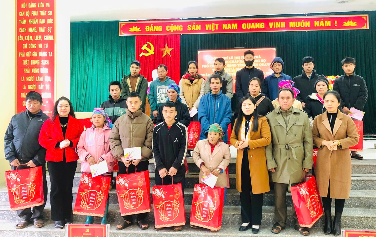 Đồng chí Lê Thị Thanh Trà, Uỷ viên Ban Chấp hành Đảng bộ tỉnh, Phó Chủ tịch Hội đồng nhân dân tỉnh trao tặng quà tại xã Xuân Giang.