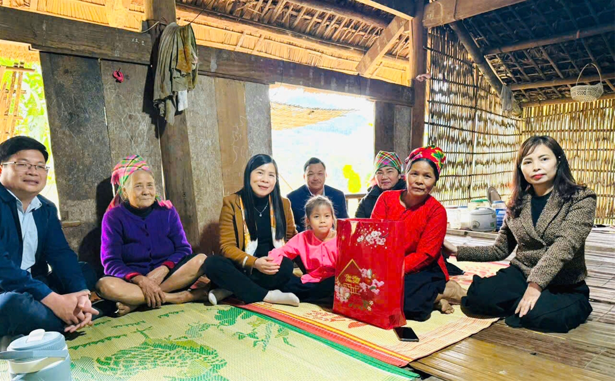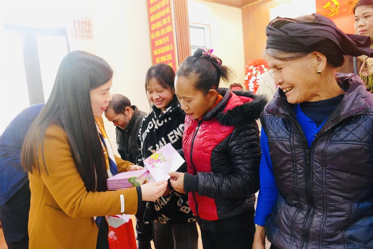 Đồng chí Lê Thị Thanh Trà, Uỷ viên Ban Chấp hành Đảng bộ tỉnh, Phó Chủ tịch Hội đồng nhân dân tỉnh trao tặng quà tại xã Bằng Lang.