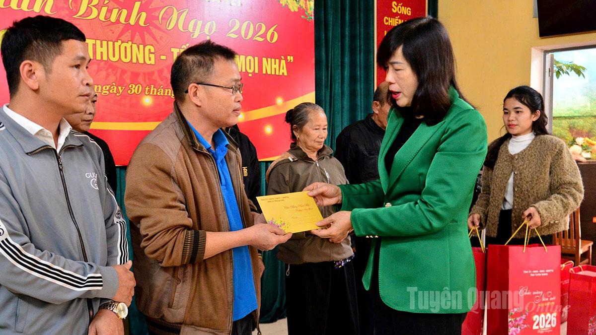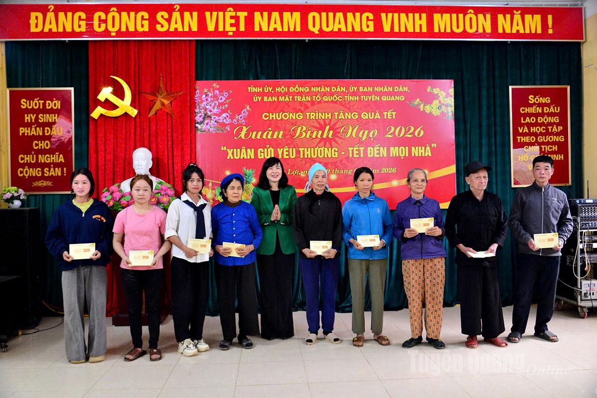 Tại chương trình, đồng chí Uỷ viên Ban Thường vụ Tỉnh uỷ, Phó Chủ tịch Hội đồng nhân dân tỉnh Phạm Thị Minh Xuân và đồng chí Bí thư Tỉnh đoàn Dương Minh Nguyệt đã trao 94 suất quà Tết trong đó có 60 suất của quà của Thường trực Hội đồng nhân dân tỉnh, 20 suất quà của Tỉnh đoàn Tuyên Quang, 14 suất quà của tỉnh (mỗi suất quà trị giá 600.000 đồng) cho các hộ nghèo, gia đình chính sách, người có công và có hoàn cảnh đặc biệt khó khăn xã Hùng Lợi.