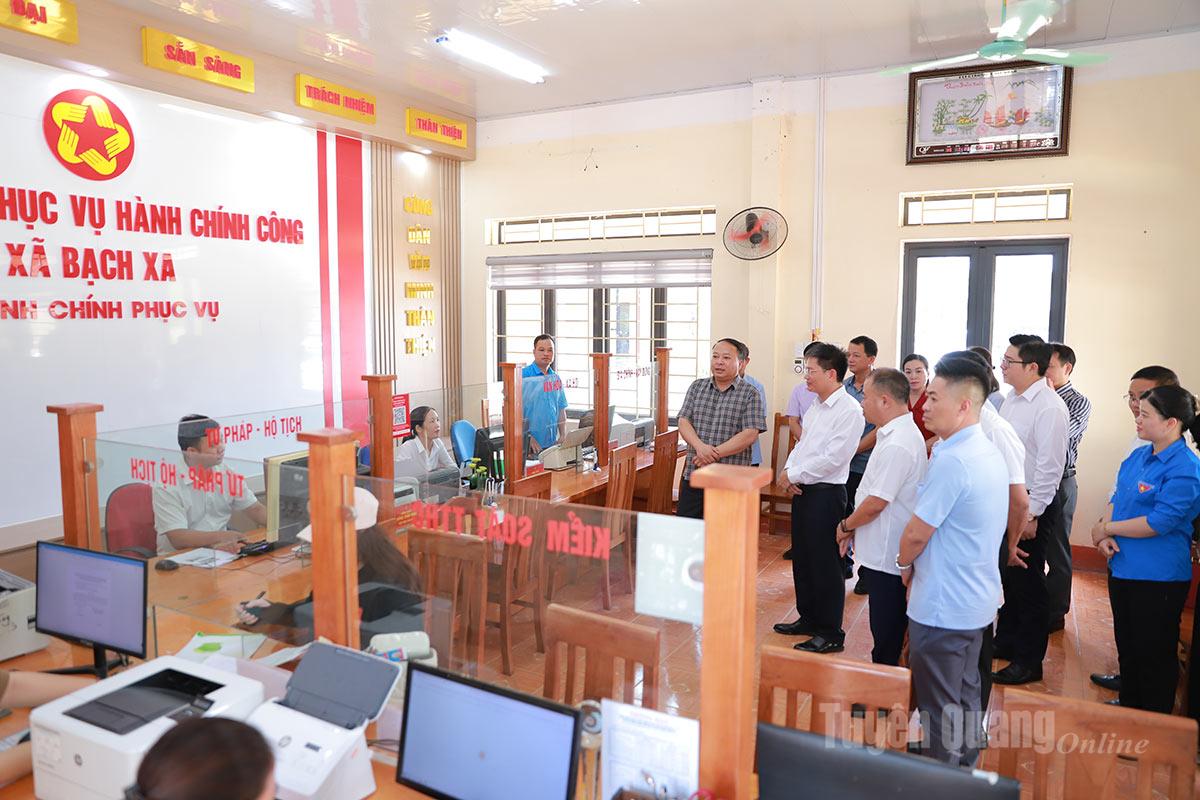 Trong chương trình làm việc, Chủ tịch UBND tỉnh Phan Huy Ngọc đã kiểm tra hoạt động và động viên cán bộ Trung tâm phục vụ hành chính công xã Bạch Xa và Phù Lưu.