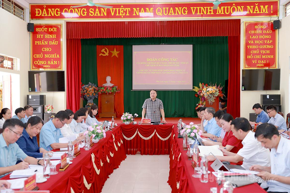 Chủ tịch UBND tỉnh Phan Huy Ngọc phát biểu tại buổi làm việc với Đảng ủy xã Phù Lưu.