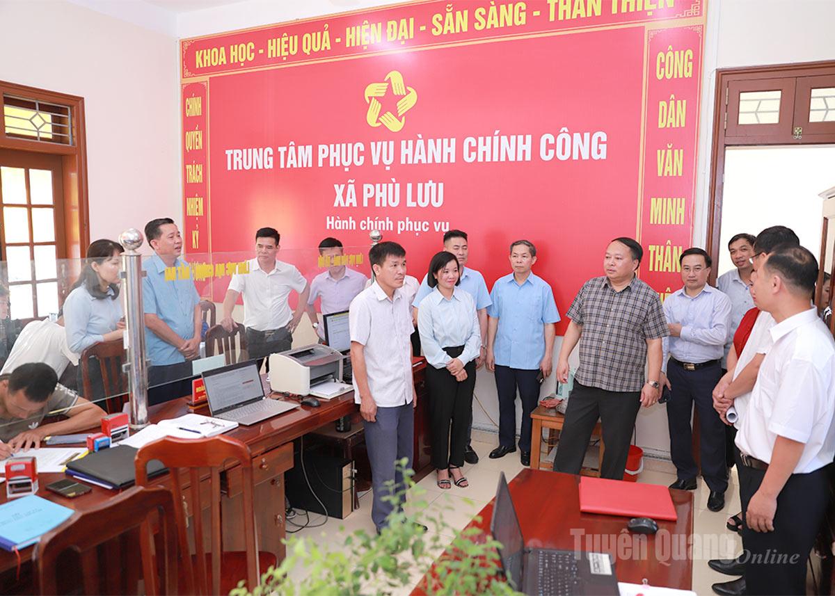 Đoàn công tác kiểm tra hoạt động Trung tâm Phục vụ hành chính công xã Phù Lưu.