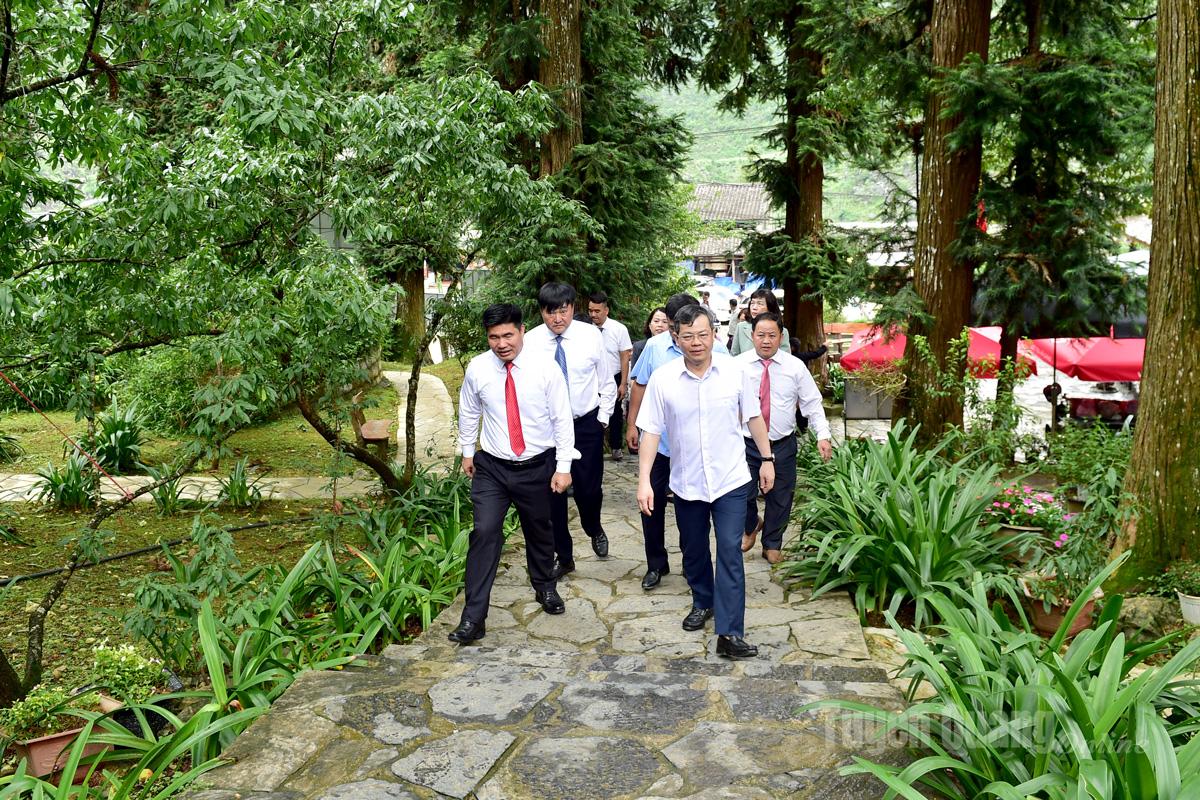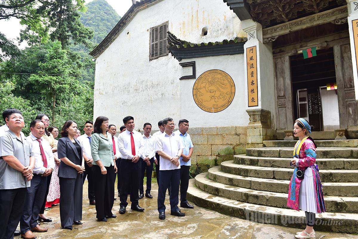 Tiếp đó, đồng chí Chủ tịch HĐND tỉnh Nguyễn Văn Sơn cùng đoàn công tác đã đến thăm, khảo sát hoạt động du lịch tại khu di tích Nhà Vương, xã Sà Phìn. Đây là công trình lớn được xây dựng từ cuối thế kỷ 19 với lối kiến trúc kết hợp của nhiều nền văn hóa.