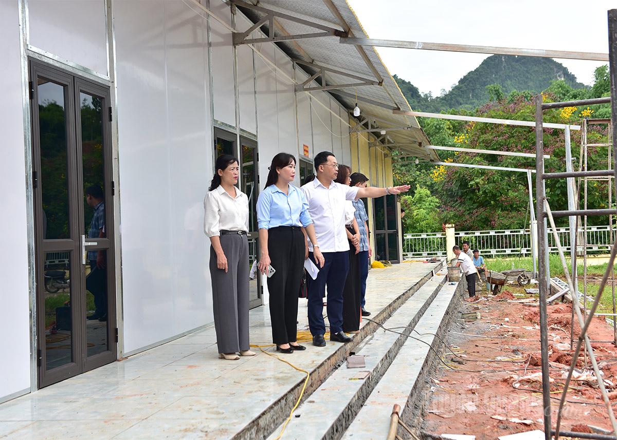 Đồng chí Nông Thị Bích Huệ, Ủy viên Ban Thường vụ Tỉnh ủy, Phó Bí thư Thường trực chuyên trách Đảng ủy UBND tỉnh kiểm tra công trình cải tạo trụ sở làm việc Văn phòng Đảng uỷ, UBND xã Yên Nguyên.