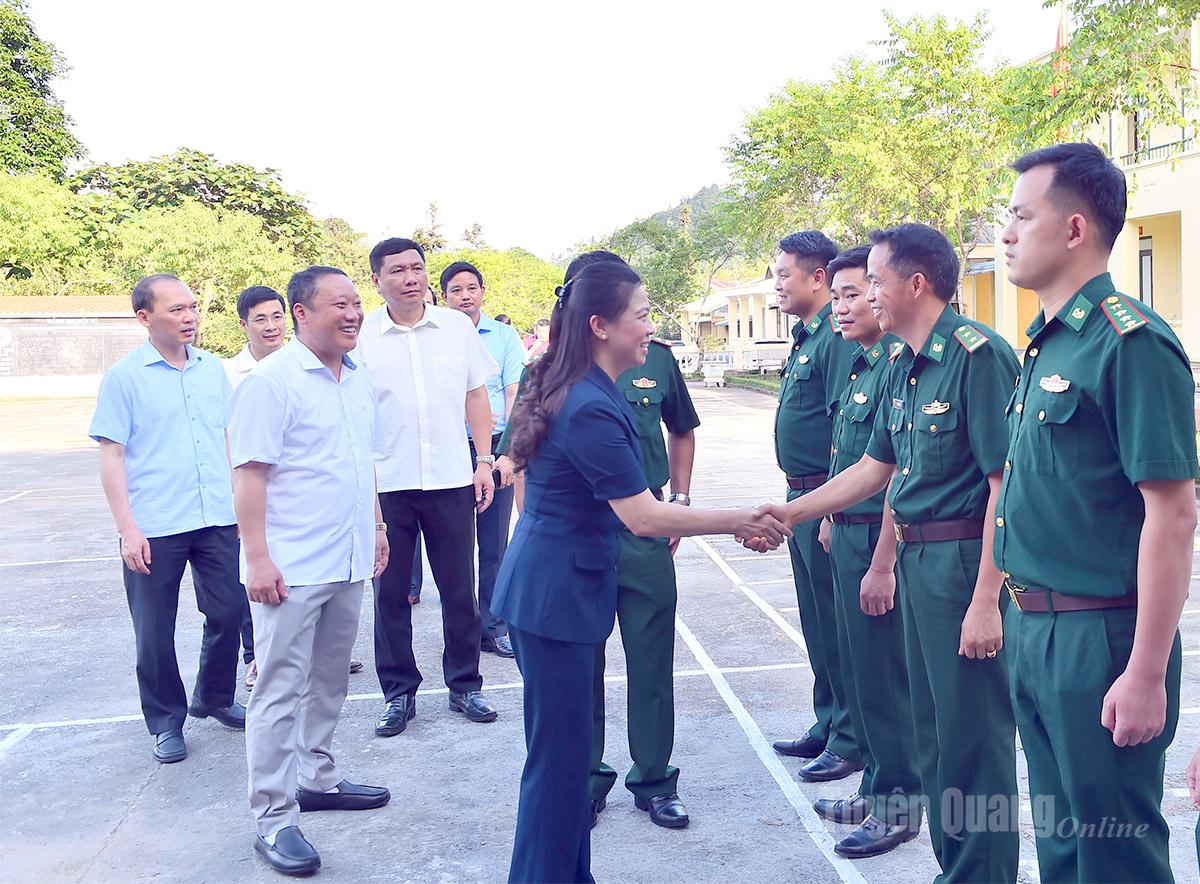 Đồng chí Lê Thị Kim Dung, Phó Bí thư Thường trực Tỉnh ủy và Đoàn công tác thăm Đồn Biên phòng Tùng Vài.