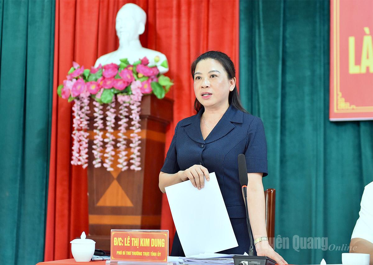 Đồng chí Phó Bí thư Thường trực Tỉnh ủy Lê Thị Kim Dung phát biểu tại buổi làm việc.
