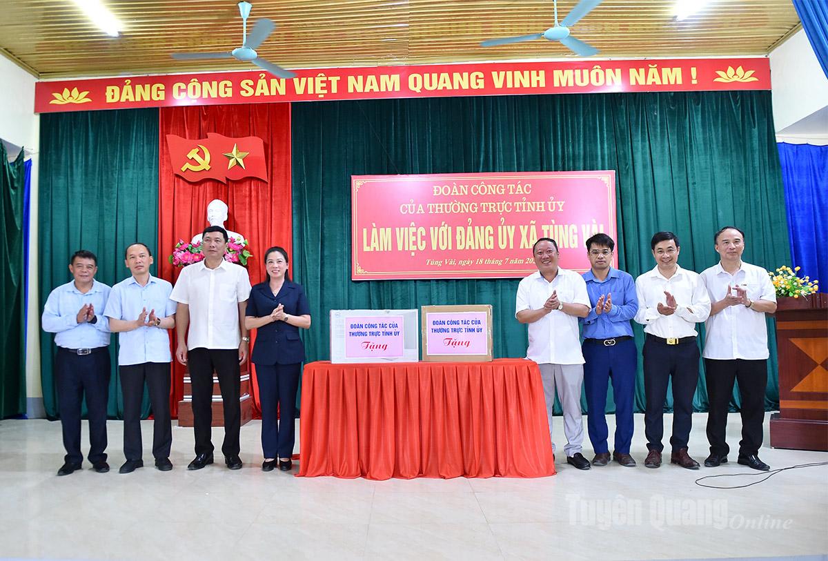Phát biểu tại buổi làm việc, đồng chí Phó Bí thư Thường trực Tỉnh ủy Lê Thị Kim Dung ghi nhận và biểu dương tinh thần trách nhiệm, sự chủ động, quyết liệt của cấp ủy, chính quyền và đội ngũ cán bộ xã Tùng Vài trong việc nhanh chóng ổn định tổ chức, đưa bộ máy vào hoạt động thông suốt sau sáp nhập.