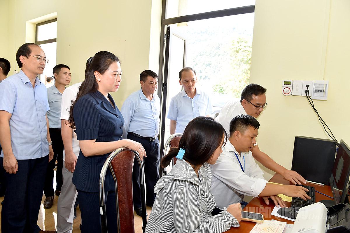 Đồng chí Phó Bí thư Thường trực Tỉnh ủy Lê Thị Kim Dung kiểm tra công tác giải quyết TTHC cho người dân tại Trung tâm phục vụ hành chính công xã Tùng Vài.