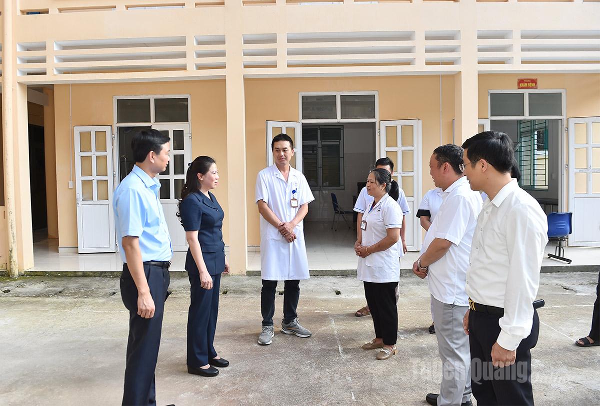 Đồng chí Lê Thị Kim Dung, Phó Bí thư Thường trực Tỉnh ủy thăm hỏi, nói chuyện với cán bộ y, bác sĩ Trạm Y tế xã Tùng Vài.