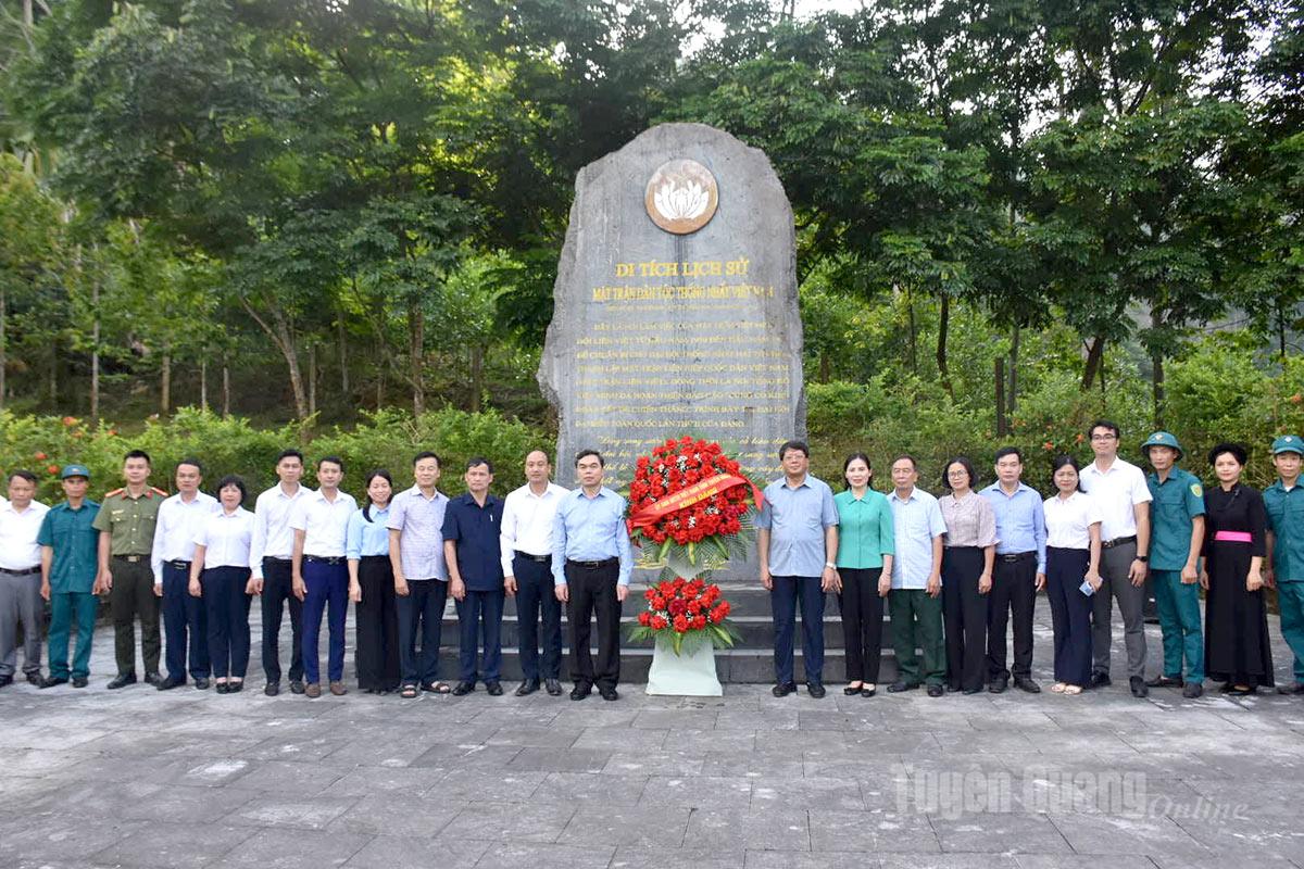 Đoàn công tác dâng hoa tại Bia di tích Mặt trận dân tộc thống nhất Việt Nam tại thôn Nà Bó, xã Kiên Đài.