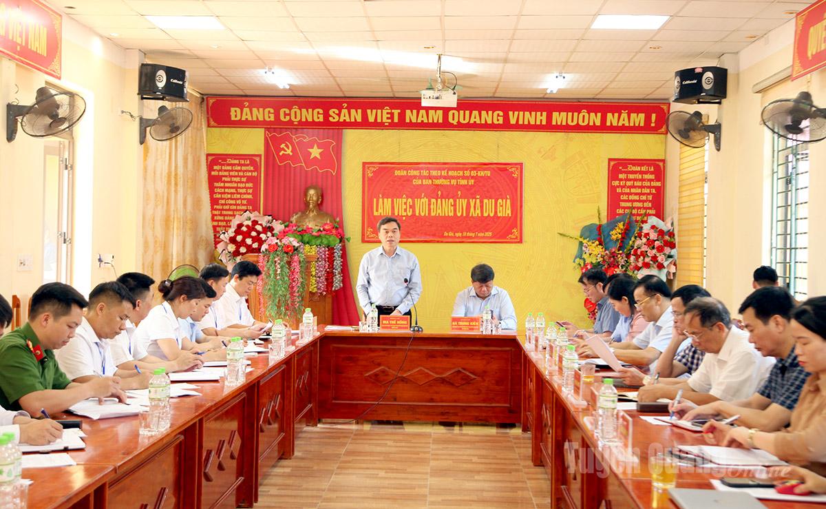 Đoàn công tác làm việc với Đảng ủy xã Du Già.