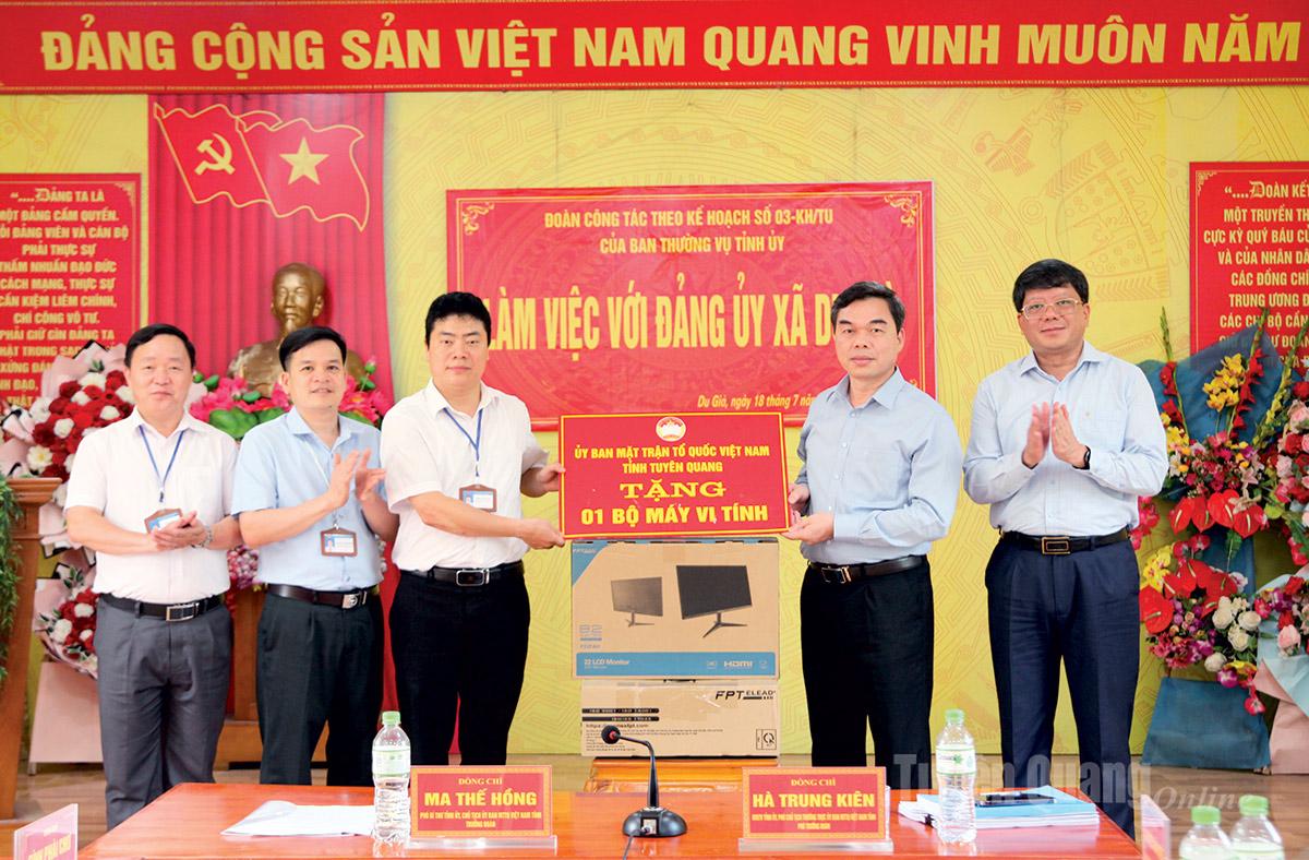 Dịp này, đoàn công tác đã tặng xã Du Già, Đường Thượng mỗi xã 1 bộ máy tính và tặng quà cho 1 cựu chiến binh xã Đường Thượng nhân dịp 78 năm Ngày Thương binh, liệt sĩ 27-7.