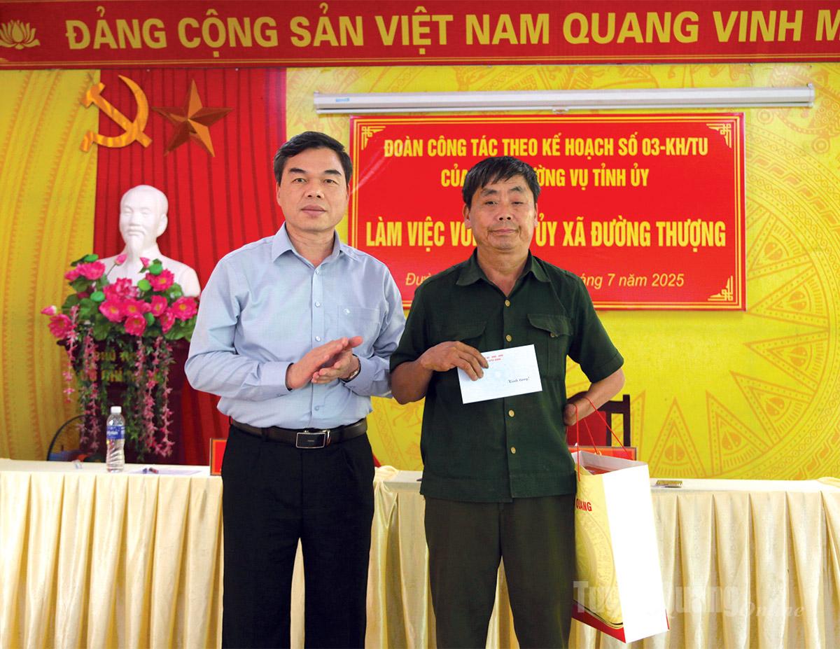 Đồng chí Phó Bí thư Tỉnh ủy Ma Thế Hồng tặng quà cựu chiến binh xã Đường Thượng.