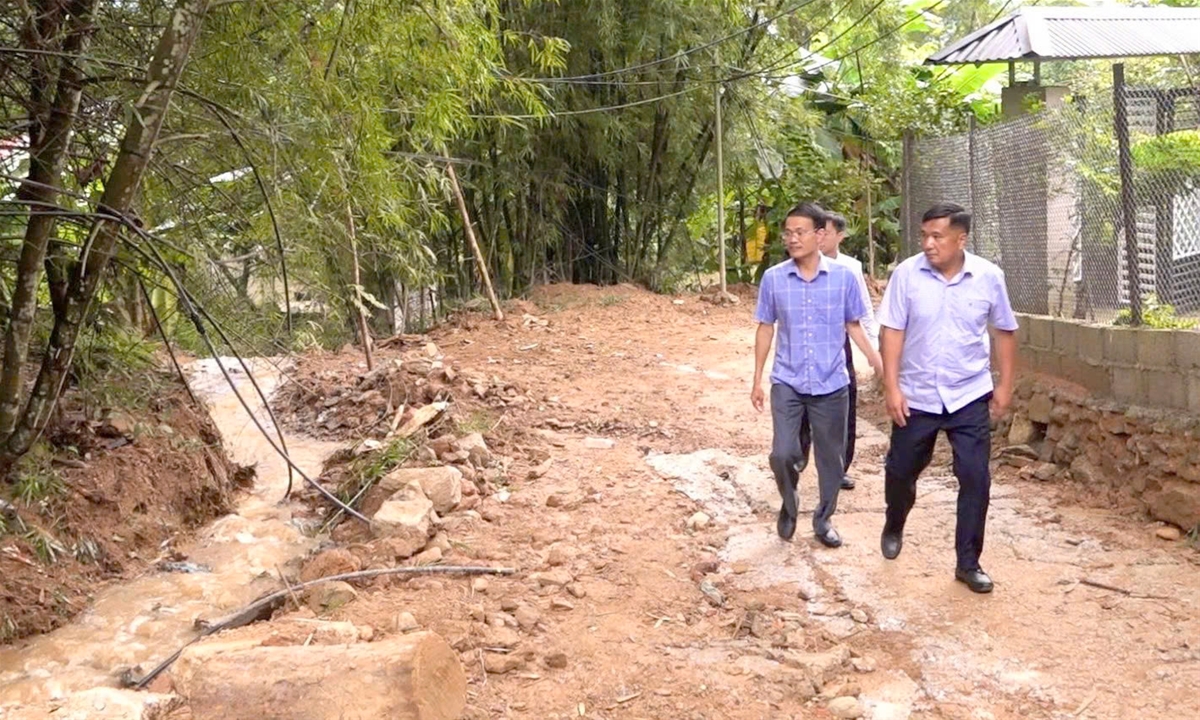 Tại xã Yên Minh, đồng chí Hầu Minh Lợi và Đoàn công tác đã kiểm tra các tuyến đường dân sinh bị sạt lở, những hộ dân sống ở khu vực xung yếu và các công trình hạ tầng bị hư hỏng. Đồng chí đề nghị chính quyền xã chủ động theo dõi sát tình hình, lập phương án di dời khẩn cấp đối với các hộ dân có nguy cơ cao; huy động lực lượng tại chỗ hỗ trợ người dân khắc phục tạm thời nhà ở và thông tuyến giao thông.