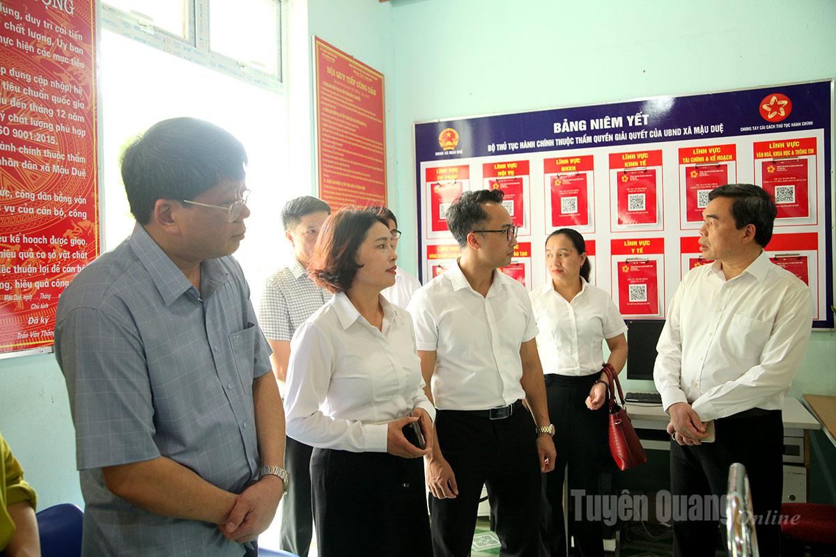 Đoàn thăm cơ sở vật chất Trung tâm phục vụ hành chính công xã Mậu Duệ.