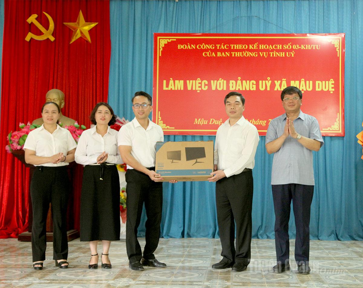 Đoàn công tác tặng xã Mậu Duệ 1 bộ máy tính.