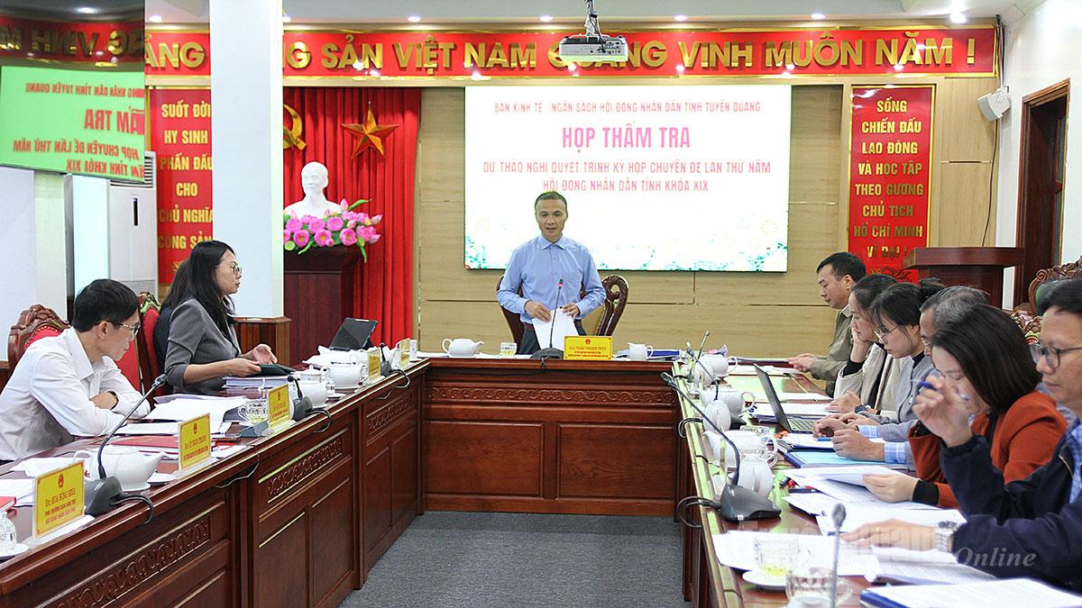 Tại cuộc họp, Ban Kinh tế - Ngân sách, HĐND tỉnh đã thẩm tra dự thảo Nghị quyết về việc kéo dài thời gian thực hiện và giải ngân kế hoạch đầu tư công vốn ngân sách Trung ương năm 2025 sang năm 2026 tỉnh Tuyên Quang; Nghị quyết Quy định mức chi cụ thể cho các hoạt động khuyến công địa phương trên địa bàn tỉnh Tuyên Quang; Nghị quyết Quy định tiêu chí xác định vị trí đối với từng loại đất, số lượng vị trí đất trong bảng giá đất và quyết định bảng giá đất trên địa bàn tỉnh Tuyên Quang.