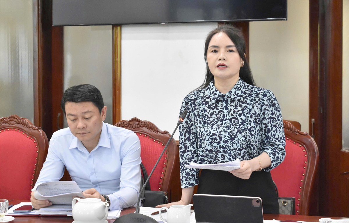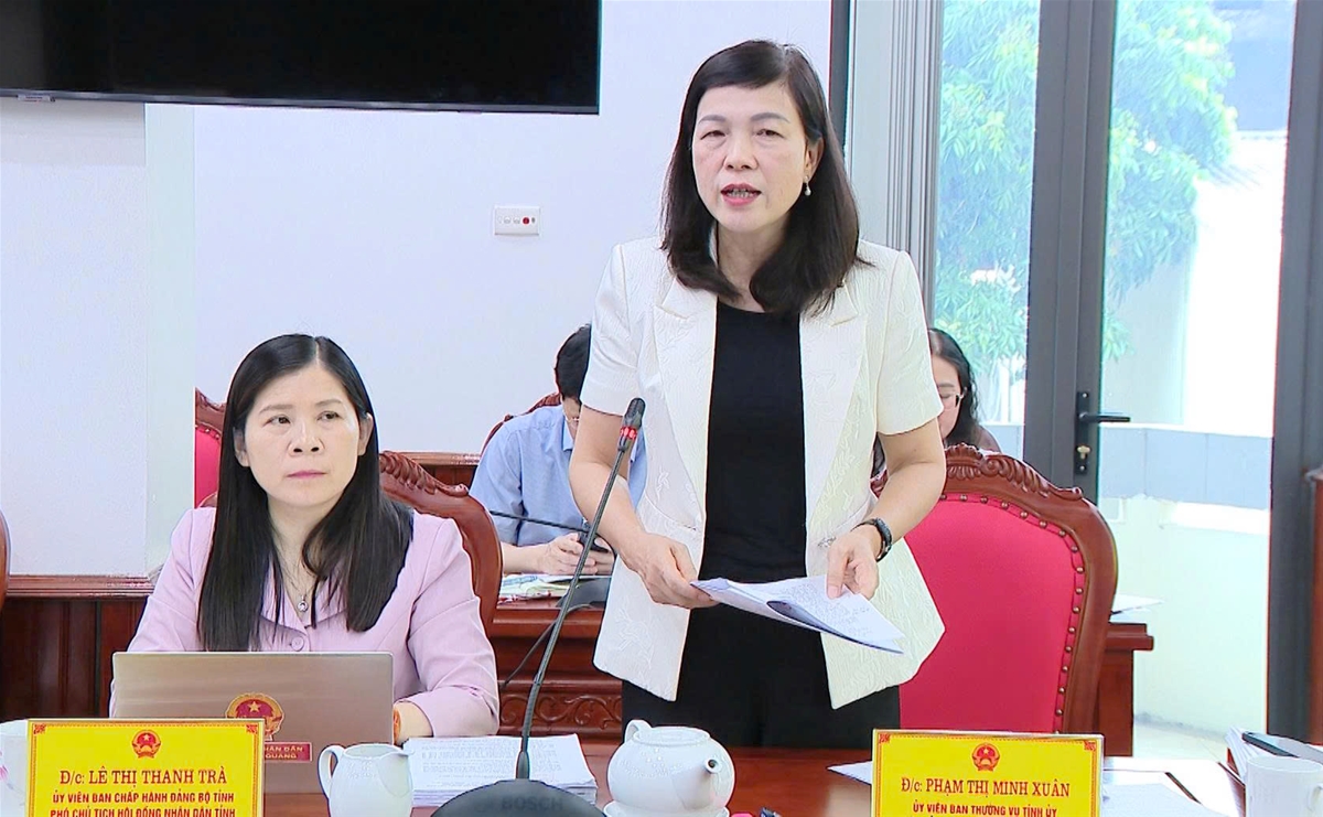 Đồng chí Phạm Thị Minh Xuân, Phó Chủ tịch HĐND tỉnh phát biểu tại cuộc họp.