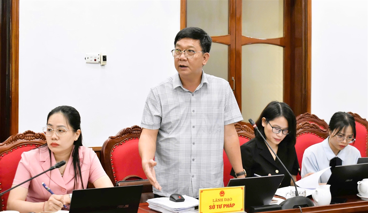 Giám đốc Sở Tư pháp Nguyễn Khánh Lâm phát biểu ý kiến.