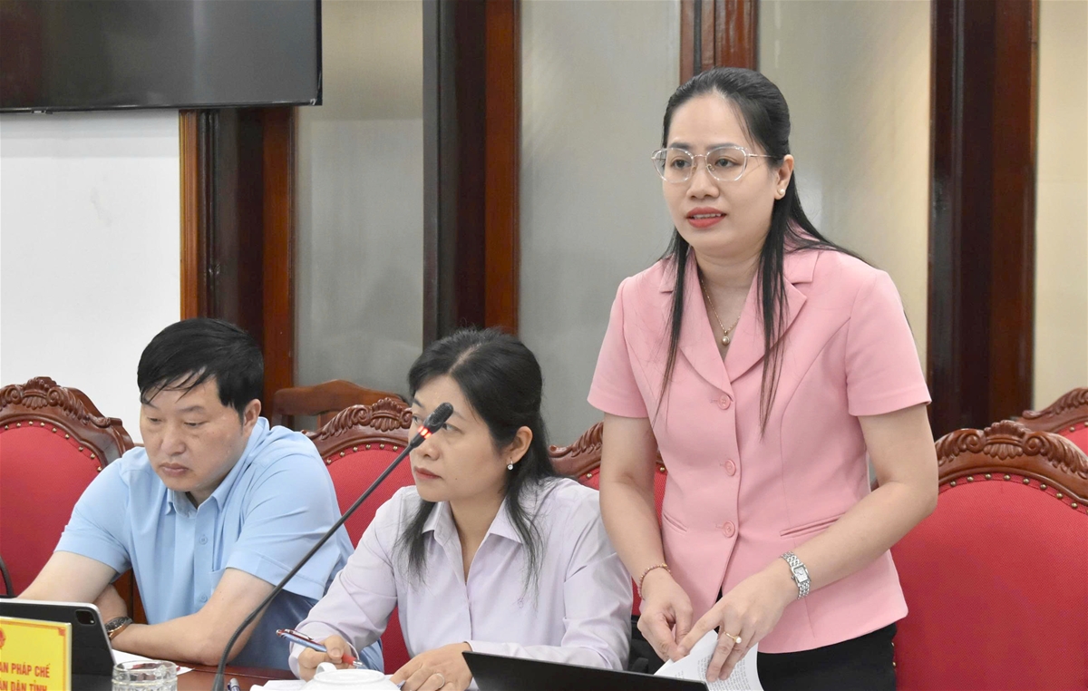 Ủy viên Ban Pháp chế HĐND tỉnh Nguyễn Thị Thanh Huyền phát biểu ý kiến.