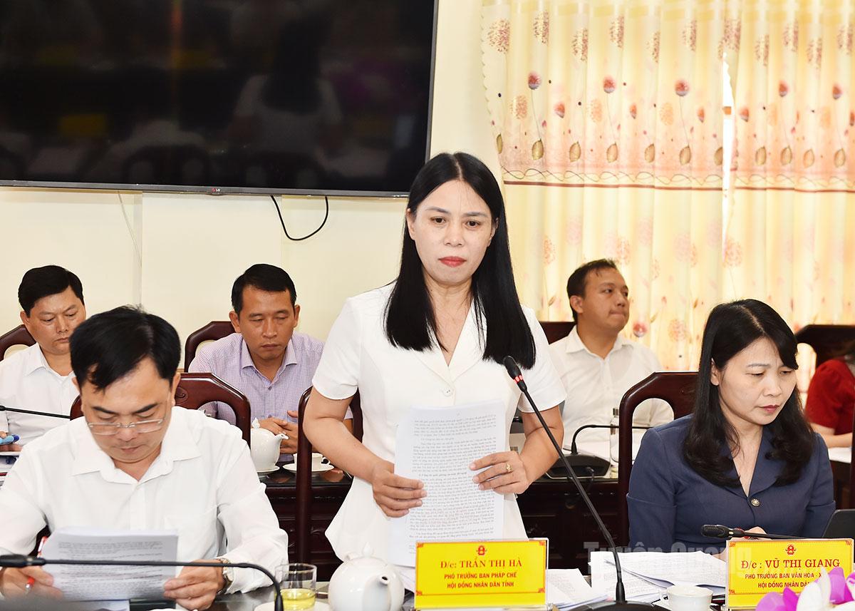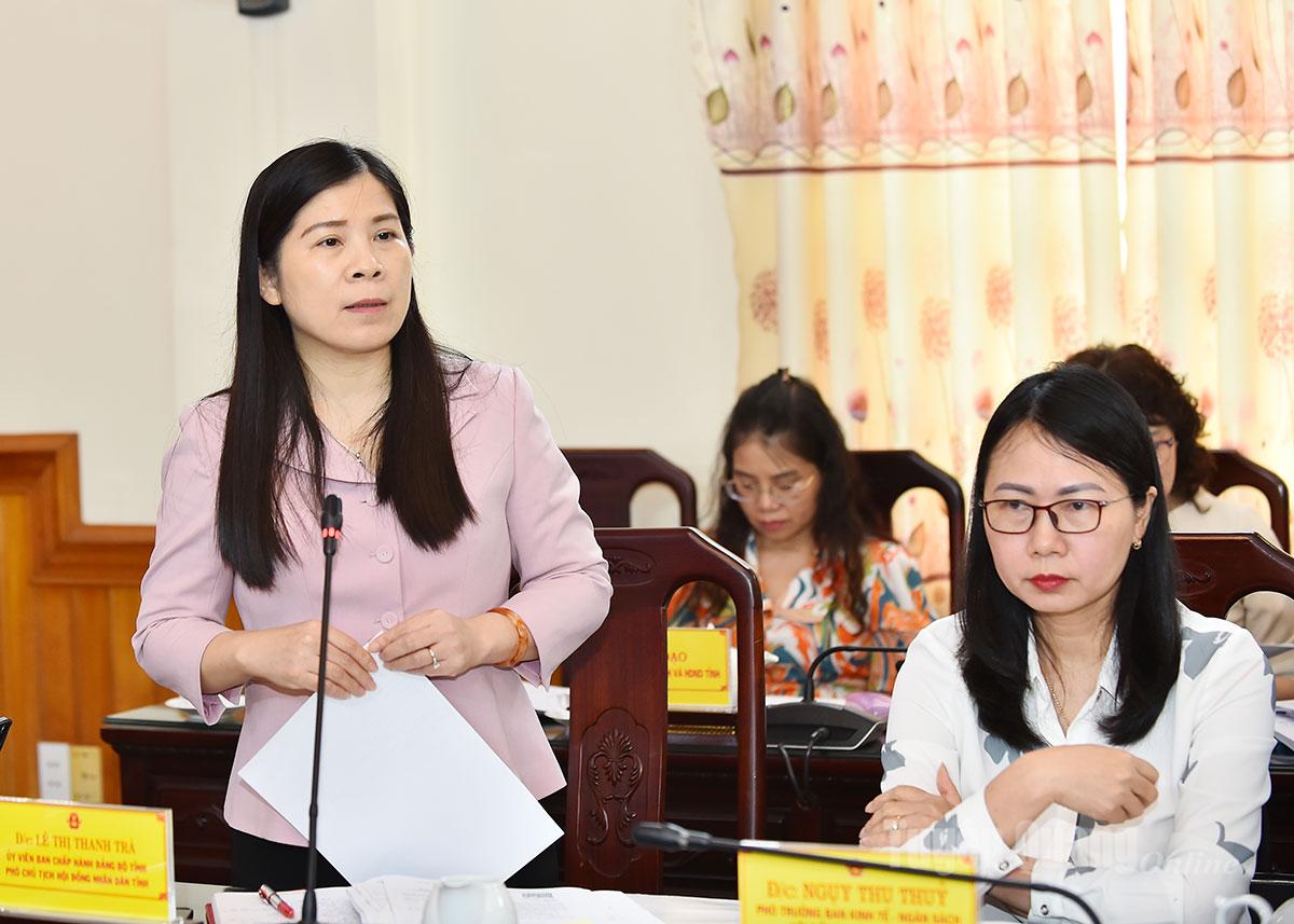 Phó Chủ tịch HĐND tỉnh Lê Thị Thanh Trà phát biểu tại cuộc họp.