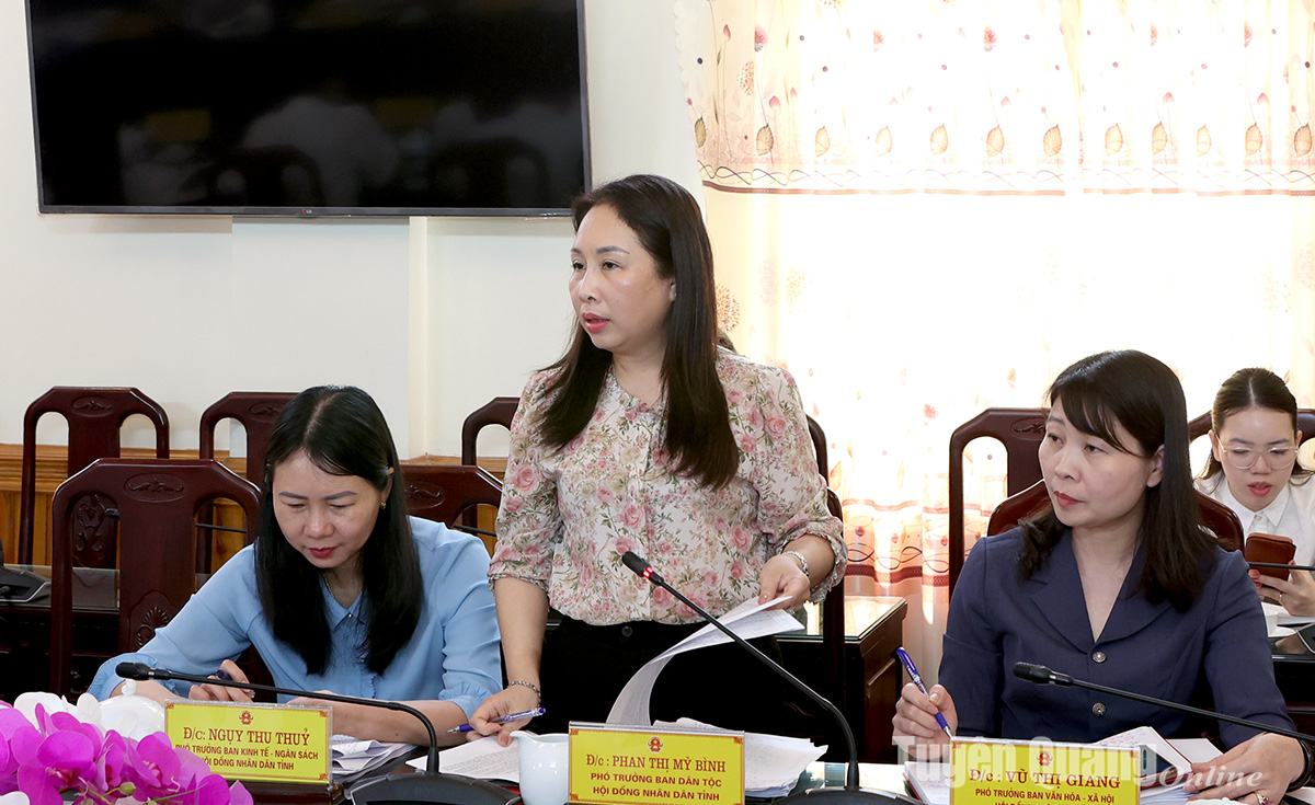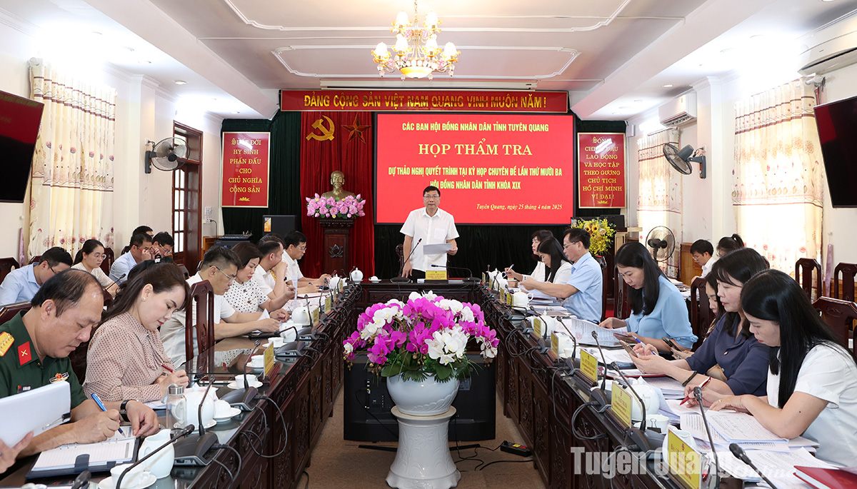 Các đại biểu cũng tham gia ý kiến vào các dự thảo nghị quyết: Quyết định phân bổ, điều chỉnh, bổ sung dự toán chi ngân sách cấp tỉnh năm 2025 cho các cơ quan, đơn vị sau khi thành lập, sắp xếp và tổ chức lại một số cơ quan chuyên môn thuộc UBND tỉnh; điều chỉnh Kế hoạch đầu tư công trung hạn vốn ngân sách địa phương giai đoạn 2021-2025 và năm 2025, tỉnh Tuyên Quang phê duyệt mức thu học phí đối với Trường Phổ thông Tuyên Quang năm học 2024-2025; Phân bổ vốn sự nghiệp Chương trình mục tiêu quốc gia giảm nghèo bền vững tỉnh Tuyên Quang năm 2025; Phê duyệt mức thu học phí đối với Trường Phổ thông Tuyên Quang năm học 2024-2025; cho ý kiến về chủ trương sắp xếp đơn vị hành chính cấp xã thuộc tỉnh Tuyên Quang; cho ý kiến về chủ trương sắp xếp đơn vị hành chính cấp tỉnh.
