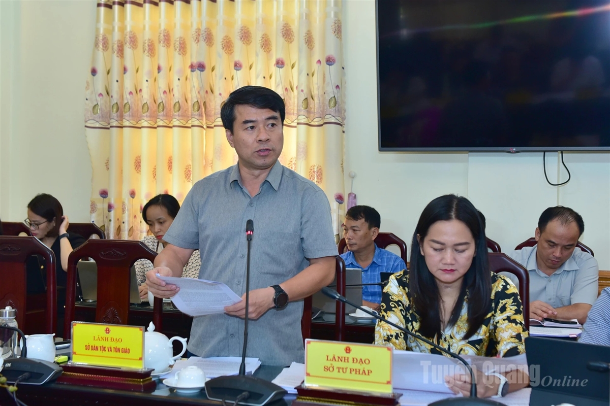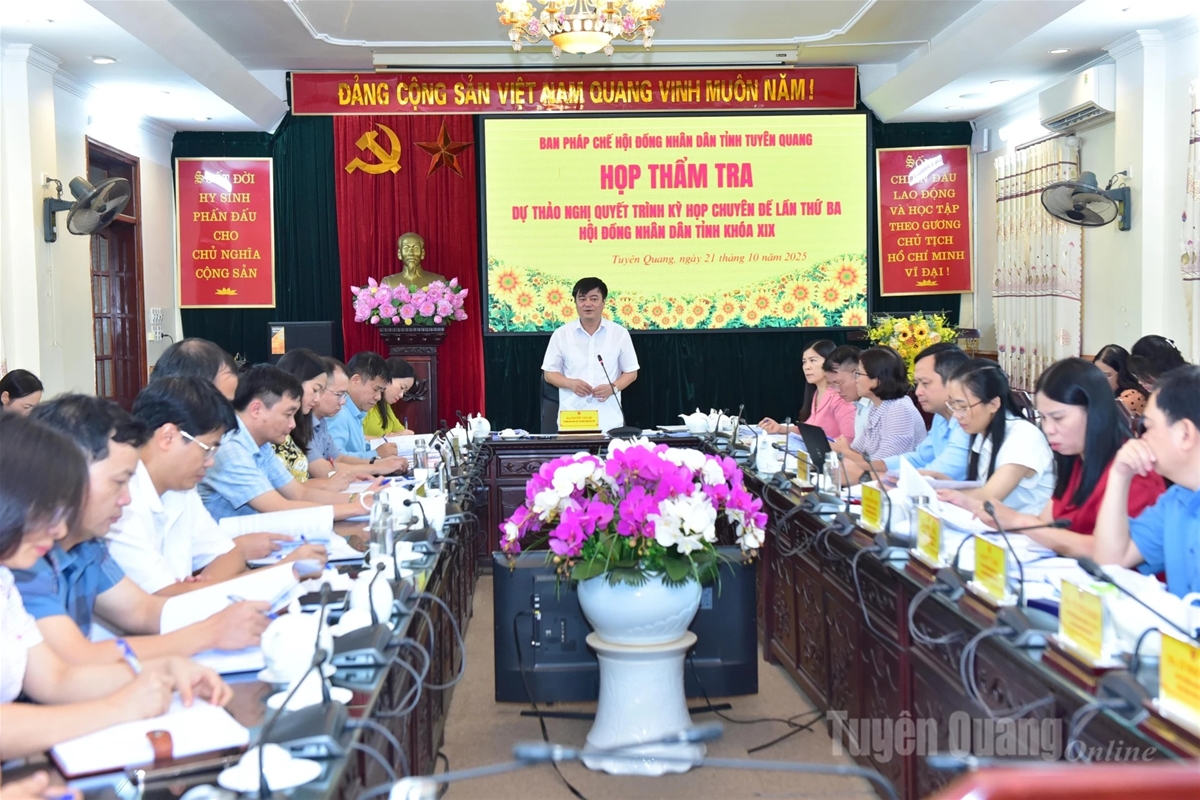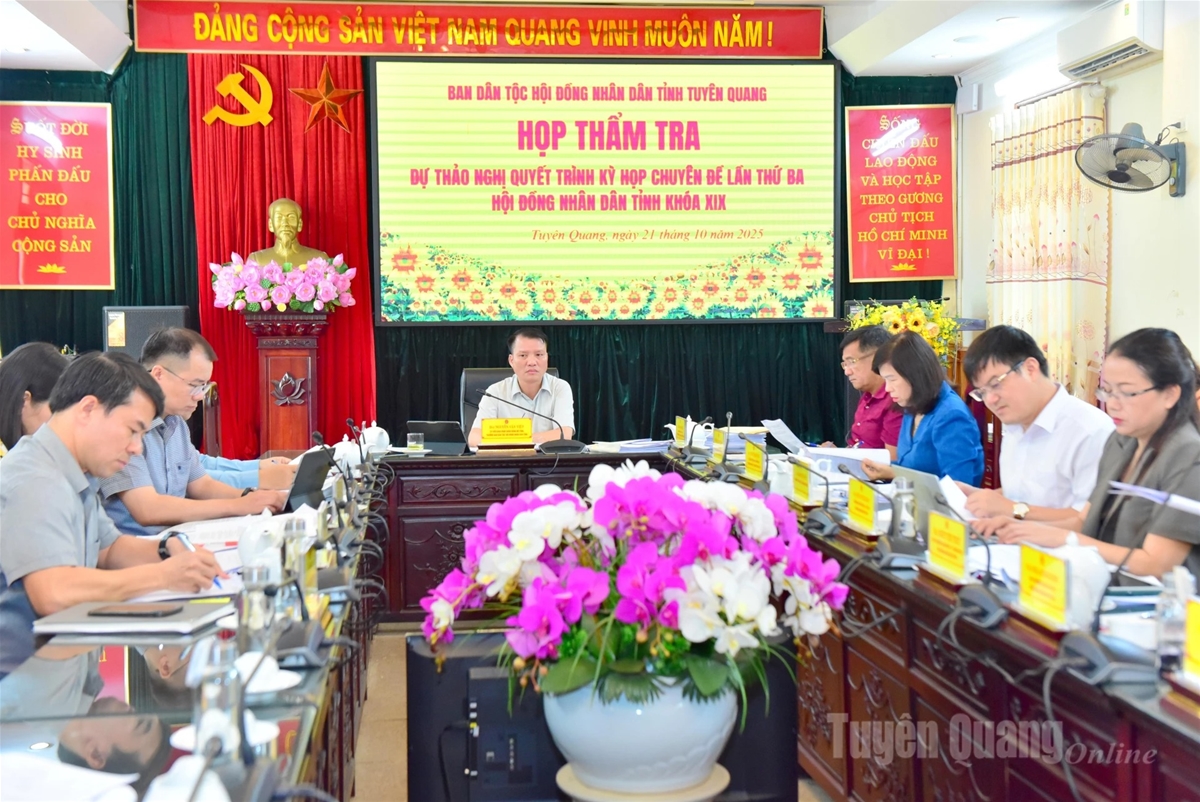 Tại cuộc họp, Ban Dân tộc và Ban Pháp chế HĐND tỉnh đã thẩm tra 6 dự thảo nghị quyết, gồm: Quy định chính sách hỗ trợ thực hiện bố trí ổn định dân cư các vùng: Thiên tai, đặc biệt khó khăn, biên giới, di cư tự do, khu rừng đặc dụng trên địa bàn tỉnh Tuyên Quang giai đoạn 2025-2030; Phân bổ dự toán chi thường xuyên ngân sách Trung ương thực hiện Chương trình mục tiêu quốc gia phát triển kinh tế - xã hội vùng đồng bào dân tộc thiểu số và miền núi tỉnh Tuyên Quang năm 2025; Điều chỉnh kế hoạch đầu tư vốn ngân sách nhà nước giai đoạn 2021-2025 và giao bổ sung kế hoạch đầu tư vốn ngân sách nhà nước năm 2025 (theo Quyết định số 1148/QĐ-TTg) thực hiện Chương trình mục tiêu quốc gia phát triển kinh tế - xã hội vùng đồng bào dân tộc thiểu số và miền núi tỉnh Tuyên Quang; Quyết định chủ trương chuyển mục đích sử dụng rừng sang mục đích khác để thực hiện Dự án Tuyến đường từ thị trấn Sơn Dương (cũ) đi xã Tân Trào; Quy định mức kinh phí hỗ trợ hoạt động của Ban Thanh tra nhân dân ở xã, phường trên địa bàn tỉnh; Quy định mức trợ cấp một lần đối với người làm việc ngoài chỉ tiêu biên chế tại các Hội do Đảng, Nhà nước giao nhiệm vụ ở cấp tỉnh hoặc ở cấp huyện trước thời điểm ngày 1- 7- 2025 nghỉ việc ngay do thực hiện mô hình tổ chức chính quyền địa phương 2 cấp trên địa bàn tỉnh.