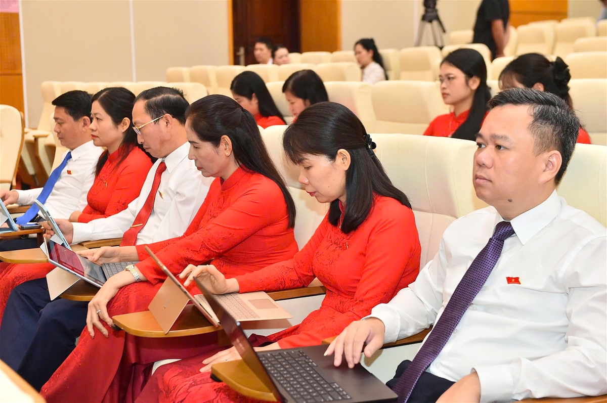 100% đại biểu HĐND tỉnh tham dự kỳ họp biểu quyết điện tử thông qua các dự thảo nghị quyết.