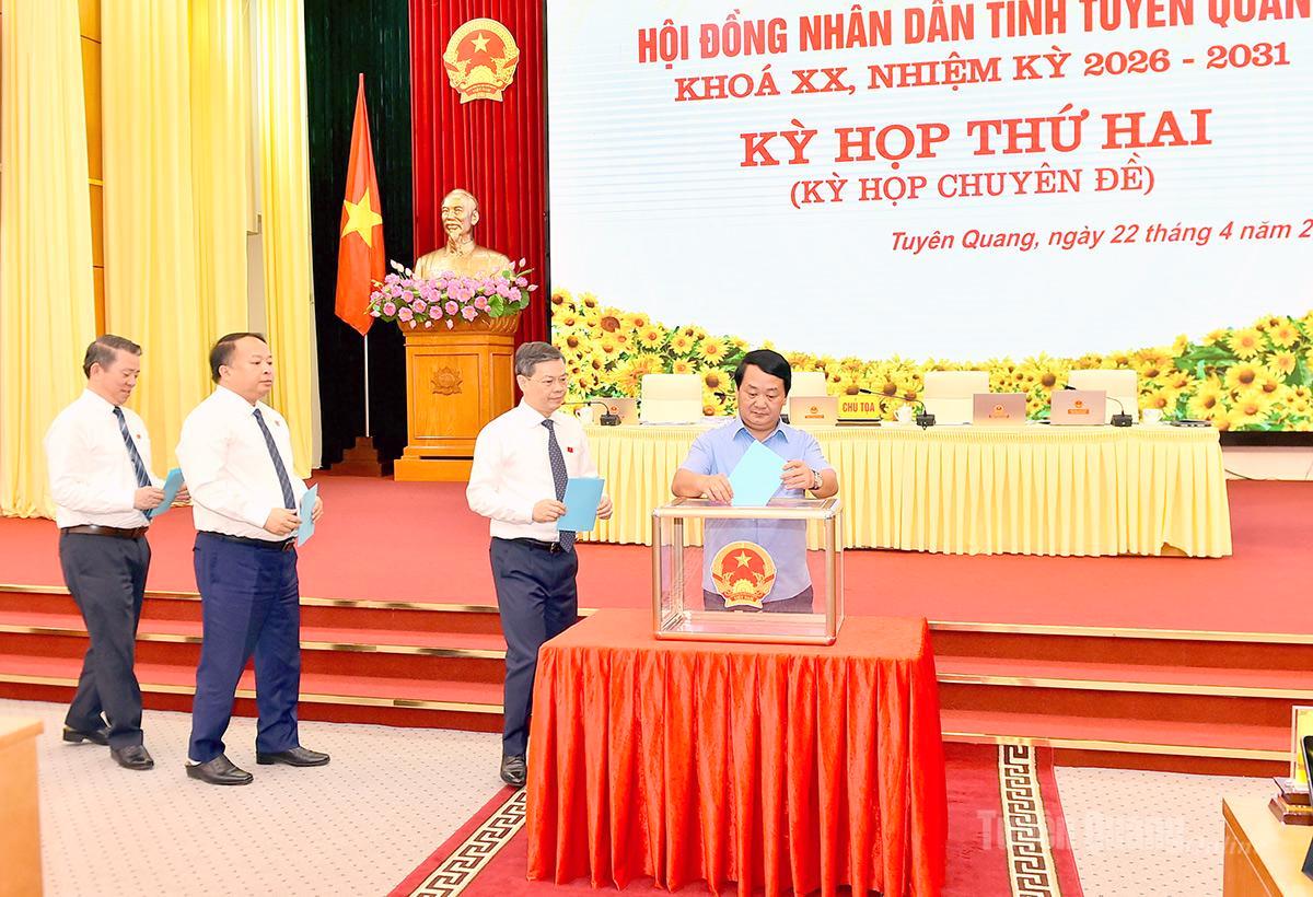 Kỳ họp đã tiến hành miễn nhiệm Ủy viên UBND tỉnh đối với ông Lại Tiến Giang, Thiếu tướng, nguyên Uỷ viên Ban Thường vụ Tỉnh uỷ, Chỉ huy Trưởng Bộ Chỉ huy Quân sự tỉnh Tuyên Quang do đã được cơ quan có thẩm quyền điều động, bổ nhiệm, bố trí công việc khác và bầu bổ sung Ủy viên UBND tỉnh nhiệm kỳ 2026-2031 đối với ông Nguyễn Đình Cương, Thiếu tướng, Chỉ huy Trưởng Bộ Chỉ huy Quân sự tỉnh theo quy định của pháp luật.
