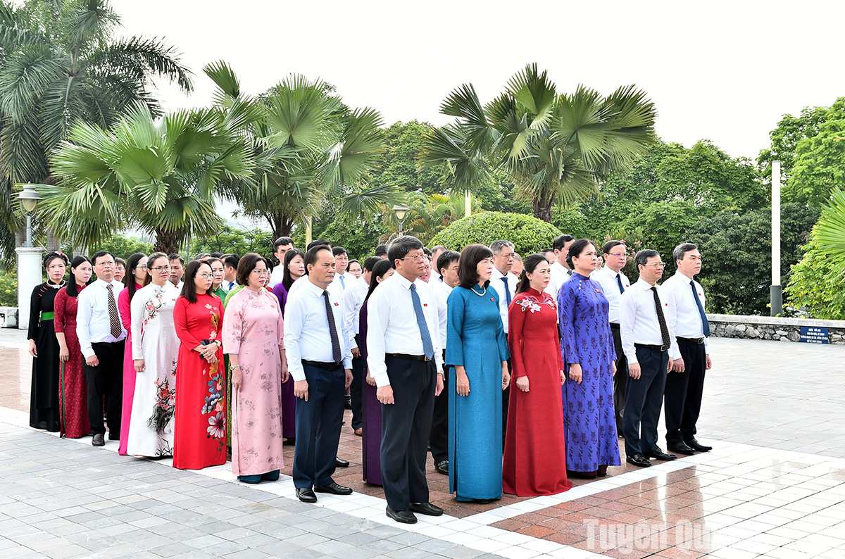 Trước giờ khai mạc Kỳ họp, các đại biểu đã tới dâng hương Đền thờ Chủ tịch Hồ Chí Minh tại Quảng trường Nguyễn Tất Thành và Đài tưởng niệm các Anh hùng Liệt sĩ.