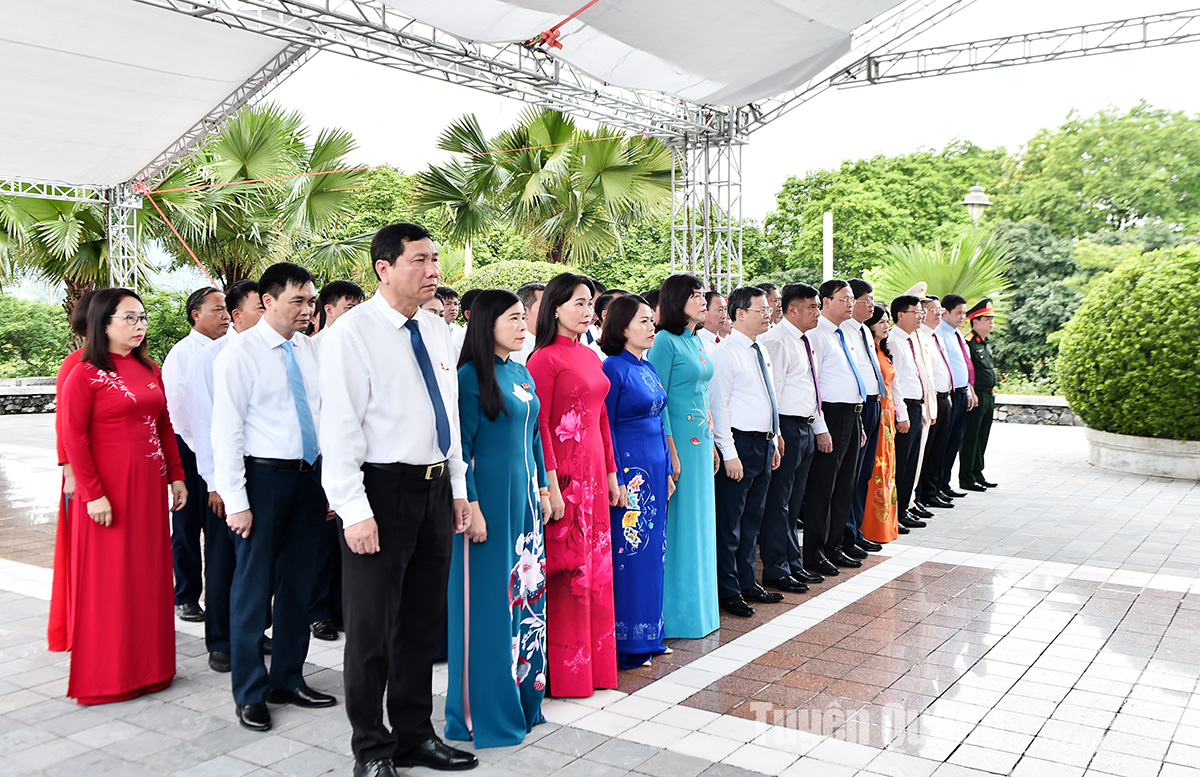 Đồng chí Chủ tịch HĐND tỉnh Nguyễn Văn Sơn cùng các đại biểu tham dự Lễ dâng hương tại Đền thờ Chủ tịch Hồ Chí Minh. Ảnh: Duy Tuấn.