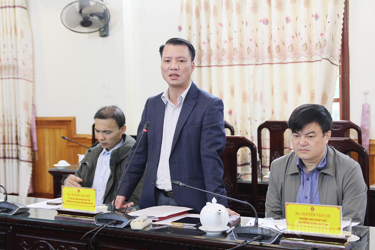Trưởng Ban Dân tộc HĐND tỉnh Nguyễn Văn Việt phát biểu ý kiến tại cuộc họp.