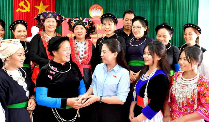 Phó Bí thư Thường trực Tỉnh ủy, Chủ tịch HĐND tỉnh Lê Thị Kim Dung tiếp xúc cử tri tại xã Minh Hương, huyện Hàm Yên. Ảnh: Ngọc Hưng.