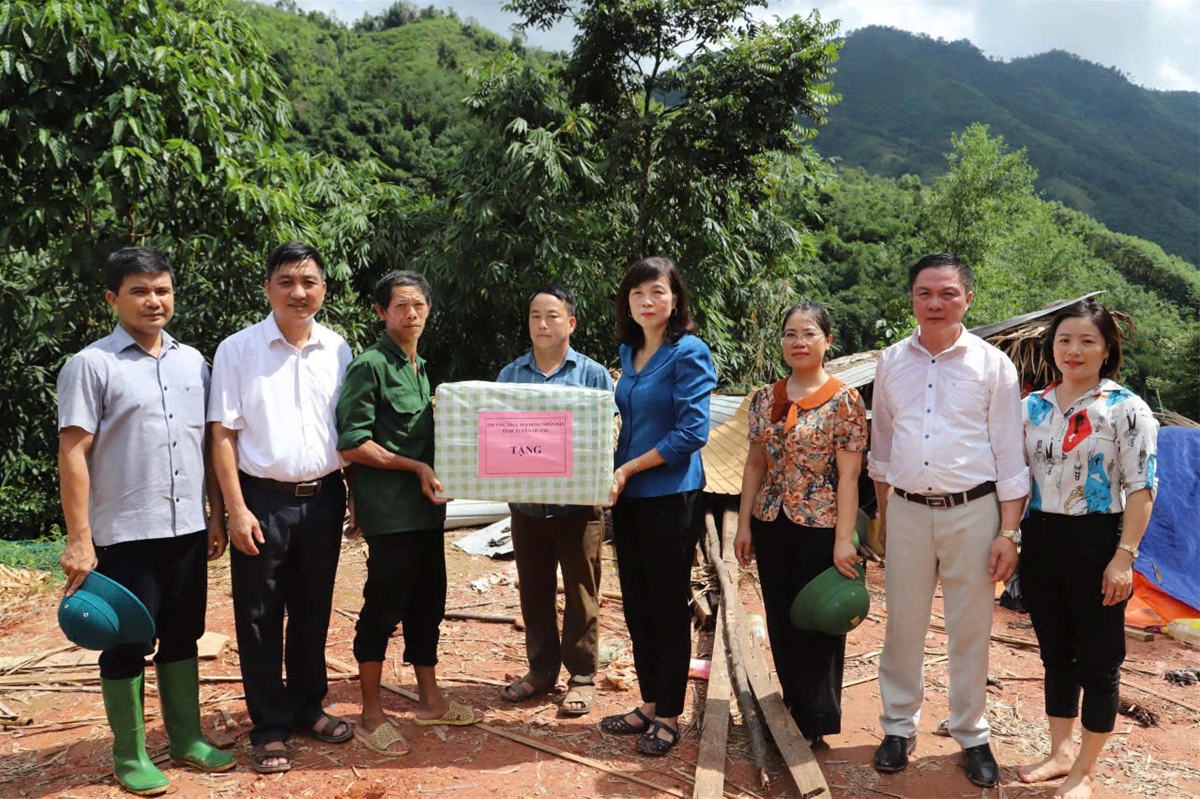 Tại hộ gia đình ông Hoàng Seo Pao, hộ nghèo đặc biệt khó khăn thôn Thượng Nguồn, đồng chí Phạm Thị Minh Xuân, Phó Chủ tịch HĐND tỉnh đã ân thăm hỏi tình hình, chia sẻ khó khăn, trao hỗ trợ và động viên gia đình. Đồng chí mong muốn hộ bị thiệt hại do thiên tai sớm ổn định tinh thần, vượt qua khó khăn, ổn định lại đời sống. Đồng thời nhấn mạnh: Hiện nay, thời tiết vẫn diễn biến phức tạp, gia đình cùng bà con trong thôn đang sinh sống ở khu vực miền núi ở đây cần tiếp tục đề phòng mưa lũ, thực hiện tốt công tác phòng tránh thiên tai để giảm thiểu thiệt hại. Đối với cấp ủy, chính quyền địa phương cần tiếp tục thực hiện tốt công tác hỗ trợ người dân khắc phục hậu quả thiên tai. Huy động tối đa lực lượng chung tay giúp đỡ hộ bị sập nhà sớm xây dựng lại căn nhà mới kiên cố hơn.
