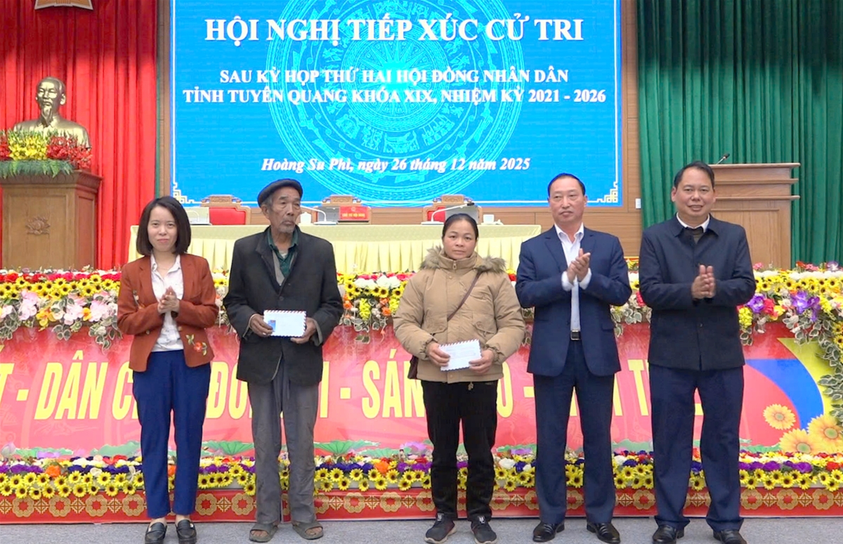 Nhân dịp này, Tổ đại biểu số 16 Hội đồng nhân dân tỉnh đã trao quà thăm hỏi, hỗ trợ hai gia đình chính sách, gia đình có hoàn cảnh khó khăn tại xã Hoàng Su Phì.