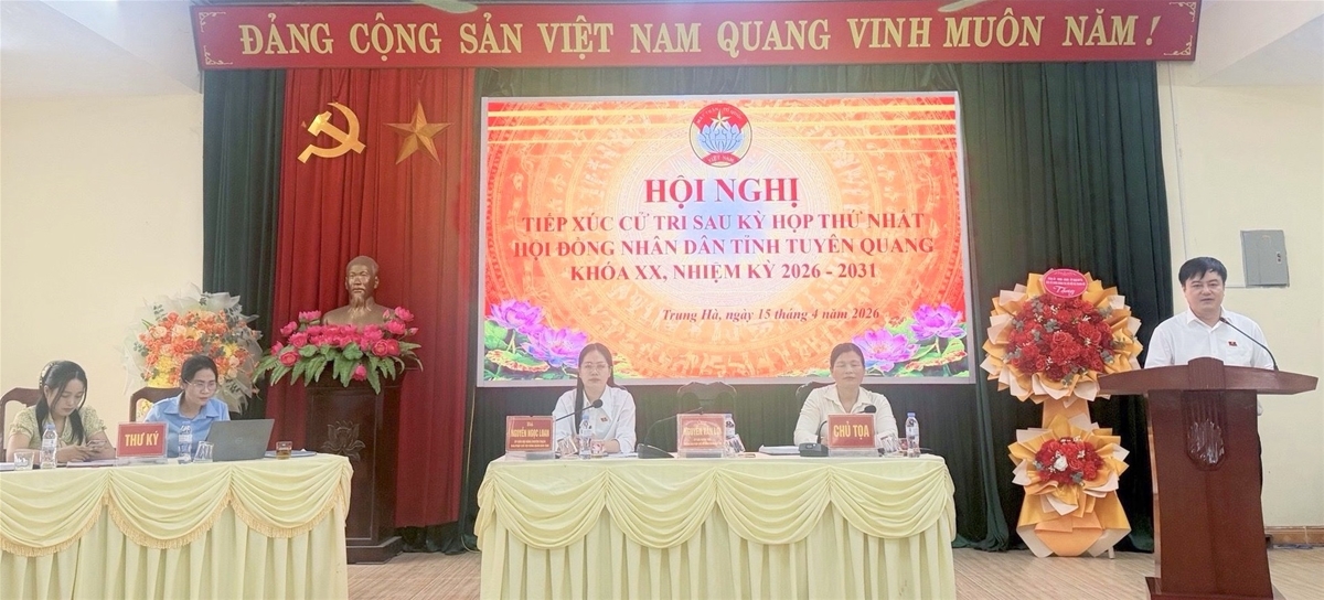 Tại Hội nghị tiếp xúc cử tri, Tổ đại biểu Hội đồng nhân dân tỉnh đã báo cáo với cử tri về kết quả bầu cử đại biểu Quốc hội khóa XVI và đại biểu Hội đồng nhân dân các cấp nhiệm kỳ 2026 - 2031; kết quả kỳ họp thứ nhất Hội đồng nhân dân tỉnh Tuyên Quang khóa XX, nhiệm kỳ 2026 - 2031.