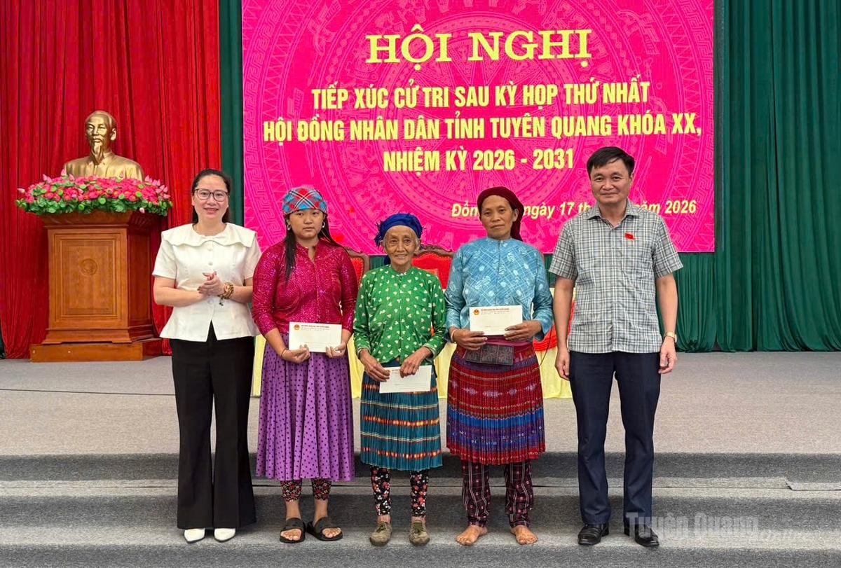 Tổ đại biểu tặng quà gia đình chính sách xã Đồng Văn.