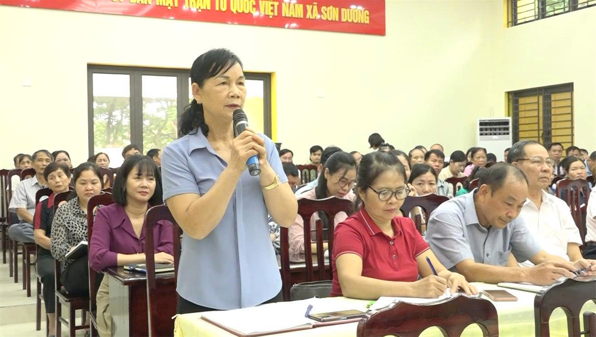 Trên tinh thần dân chủ, thẳng thắn, trách nhiệm, xây dựng, tại hội nghị tiếp xúc cử tri đã có 17 lượt cử tri phát biểu, kiến nghị về một số nội dung, cụ thể: Thuỷ lợi, giao thông nông thôn, bảo vệ môi trường, cấp giấy chứng nhận quyền sử dụng đất, chế độ chính sách;….Các kiến nghị của cử tri đã được lãnh đạo Ủy ban nhân dân xã Sơn Dươg tiếp thu và trả lời, làm rõ theo thẩm quyền.