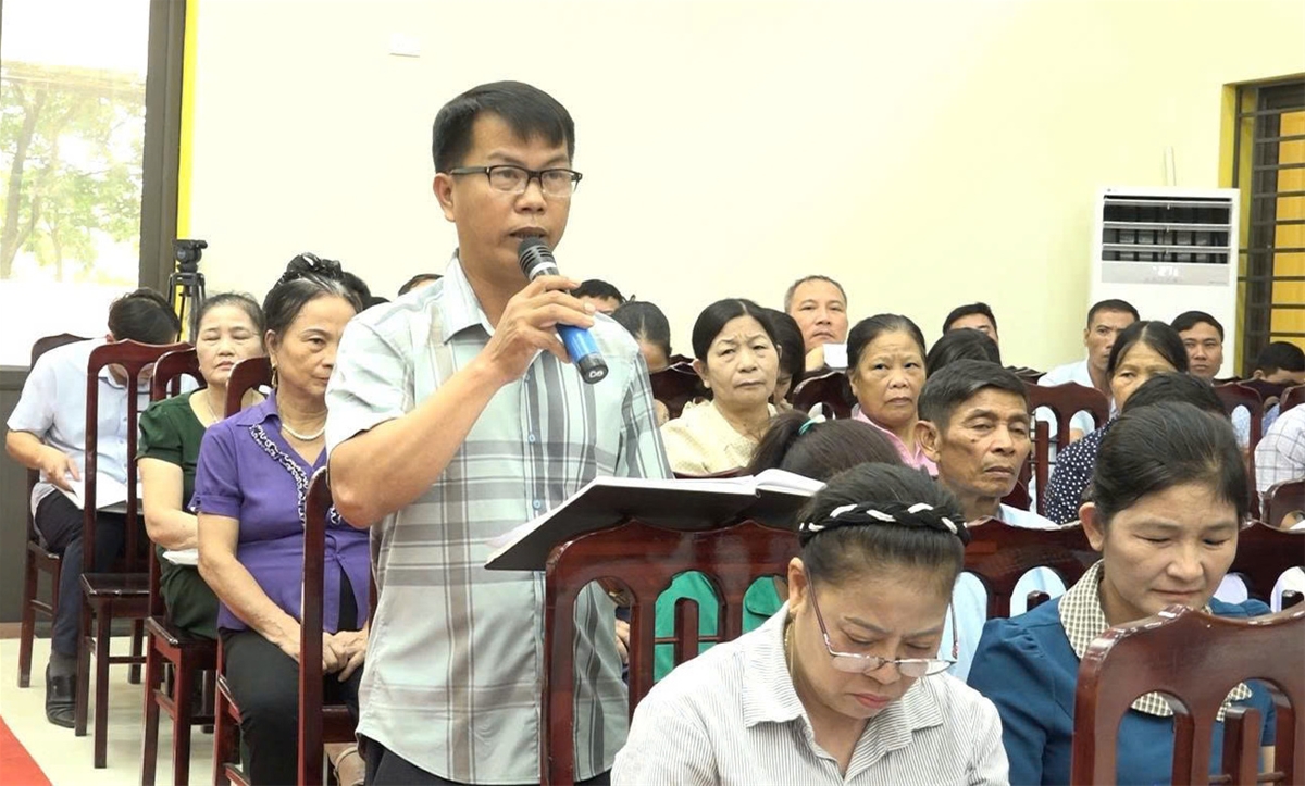 Cử tri xã Sơn Dương phát biểu kiến nghị đại biểu HĐND tỉnh.