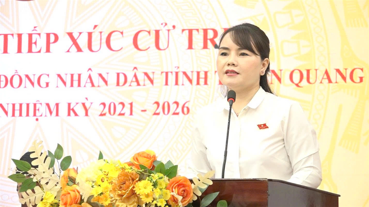 Thay mặt Tổ đại biểu số 5 Hội đồng nhân dân tỉnh, đồng chí Trần Thị Hà đã báo cáo với cử tri về kết quả kỳ họp thứ nhất Hội đồng nhân dân tỉnh khóa XIX, nhiệm kỳ 2021 - 2026. Theo đó, kỳ họp được tổ chức vào ngày 01/7/2025 - ngày làm việc đầu tiên của tỉnh Tuyên Quang sau hợp nhất 02 tỉnh Tuyên Quang và Hà Giang. Đây là kỳ họp đầu tiên của Hội đồng nhân dân tỉnh sau hợp nhất có nhiệm vụ kiện toàn tổ chức bộ máy của Hội đồng nhân dân, Ủy ban nhân dân tỉnh và các cơ quan chuyên môn, bảo đảm cho chính quyền địa phương hoạt động ổn định, hiệu quả, phục vụ Nhân dân trên tinh thần đổi mới và phát triển.