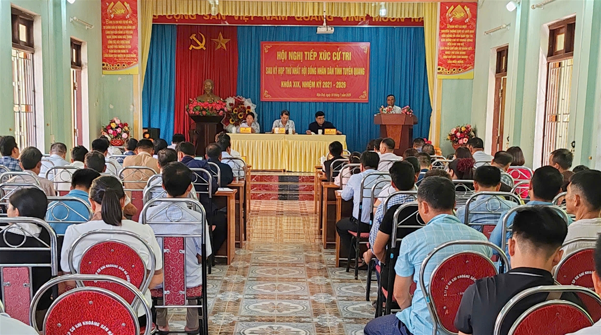 Tại buổi tiếp xúc cử tri, Tổ đại biểu HĐND tỉnh đã thông báo đến cử tri kết quả kỳ họp thứ nhất HĐND tỉnh Tuyên Quang khóa XIX, nhiệm kỳ 2021 - 2026. Cử tri phấn khởi, đánh giá cao việc nhanh chóng tổ chức kỳ họp thứ nhất, kiện toàn tổ chức bộ máy của HĐND cấp tỉnh.
