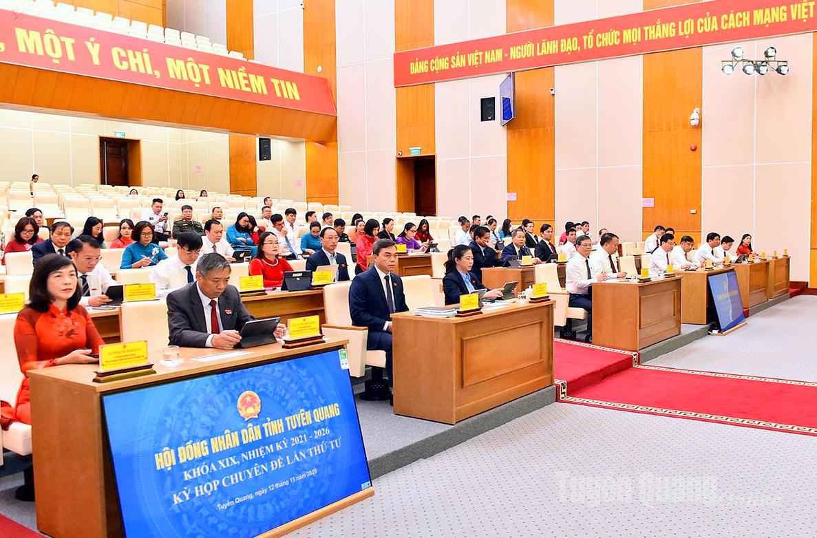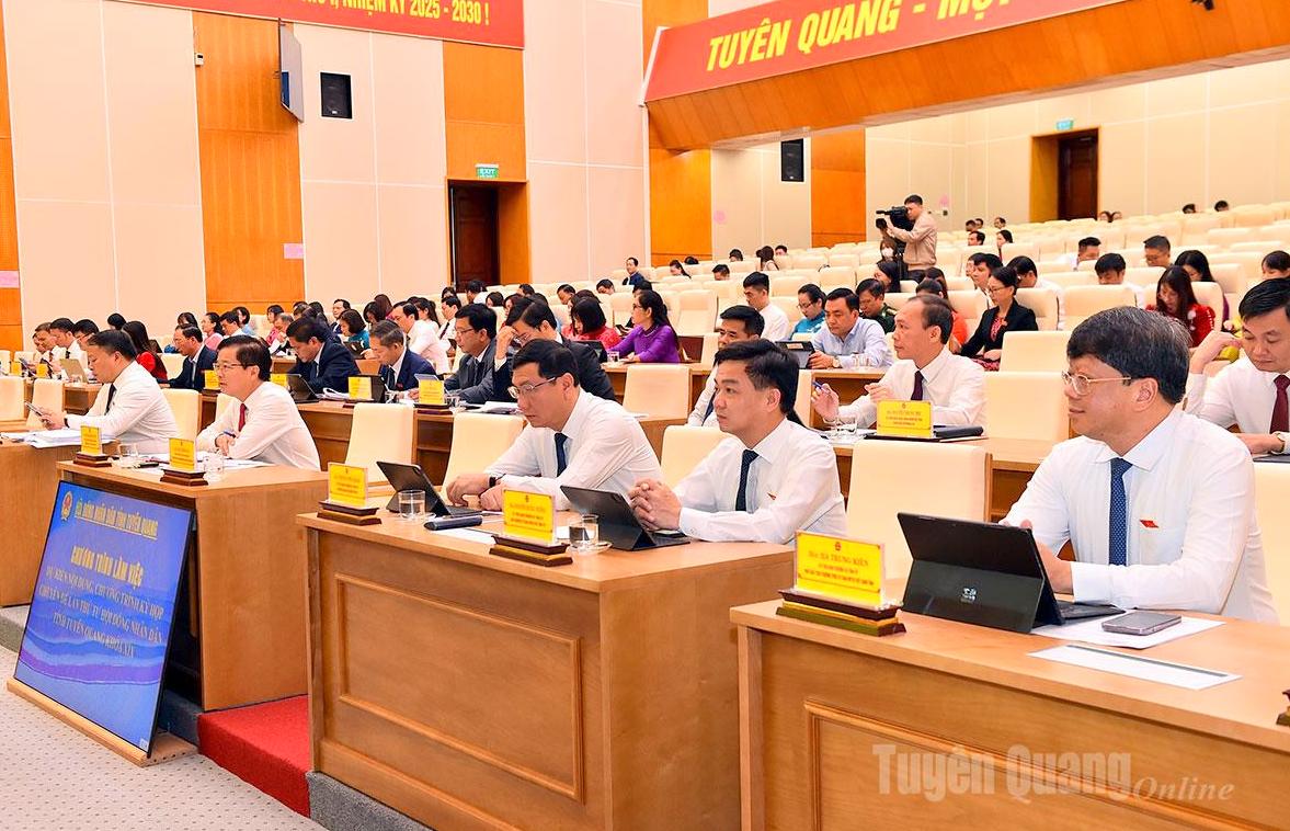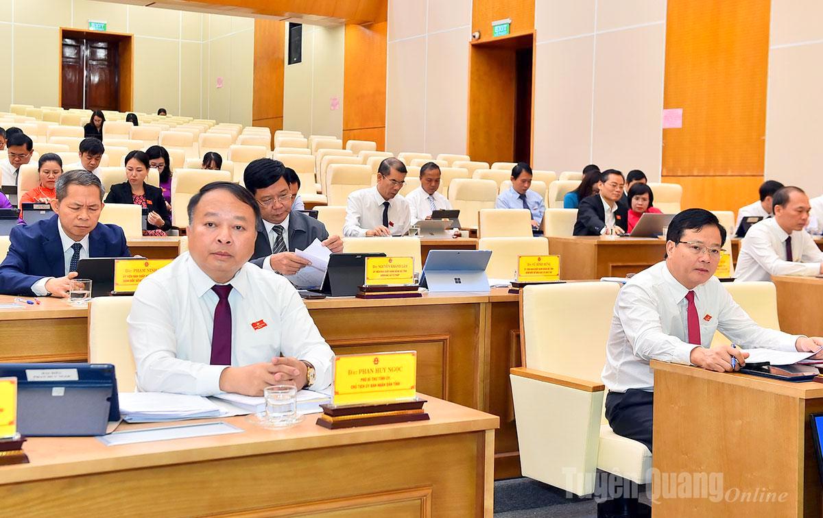 Tại kỳ họp, HĐND tỉnh đã xem xét, thảo luận và thông qua 06 nghị quyết quan trọng về các chính sách, định mức liên quan đến lĩnh vực tài chính, ngân sách, cụ thể: (1) Quy định mức hưởng phụ cấp hằng tháng đối với thôn đội trưởng và mức trợ cấp ngày công lao động đối với dân quân khi làm nhiệm vụ trên địa bàn tỉnh; (2) Quy định mức chi và mức hỗ trợ các hoạt động khuyến nông địa phương trên địa bàn tỉnh; (3) Quy định nội dung, mức chi bảo đảm hoạt động giám sát, phản biện xã hội của Ủy ban Mặt trận Tổ quốc Việt Nam và các tổ chức chính trị - xã hội các cấp trên địa bàn tỉnh Tuyên Quang;