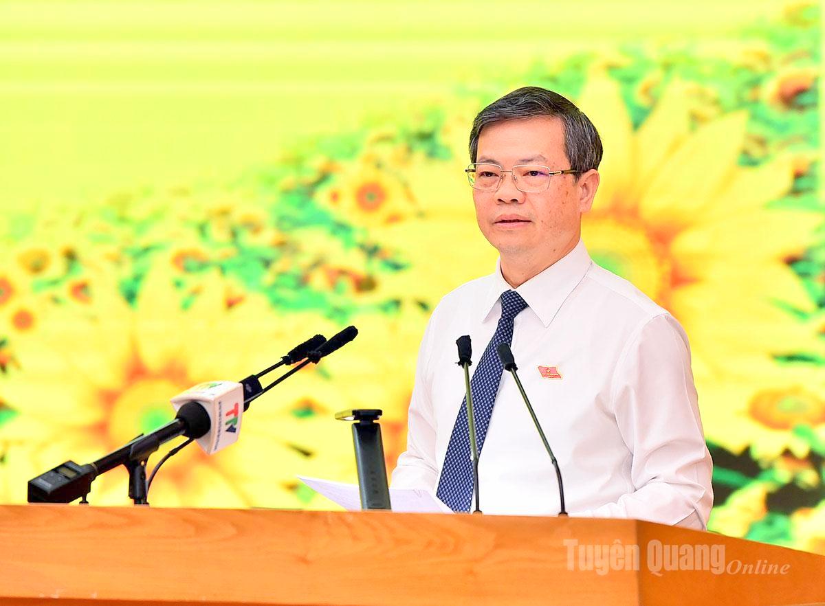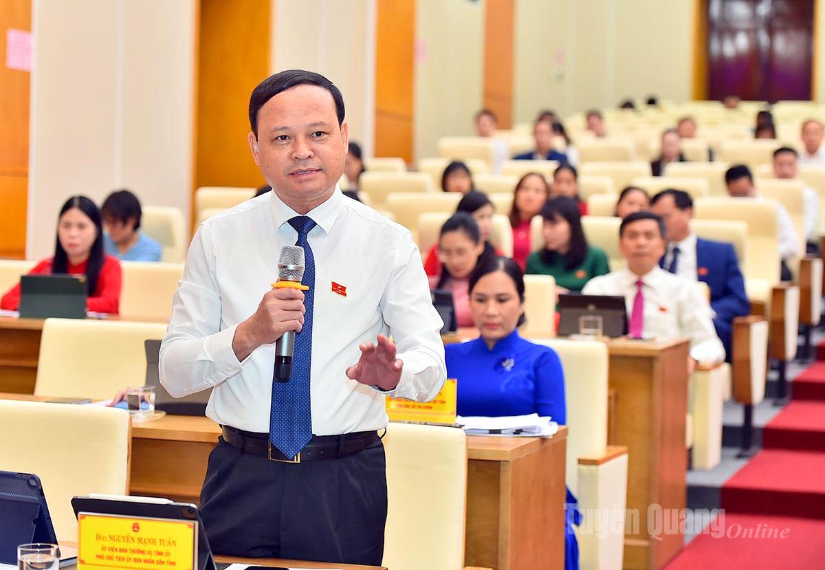 Đồng chí Phó Chủ tịch Thường trực UBND tỉnh Nguyễn Mạnh Tuấn phát biểu làm rõ thêm các nghị quyết đã trình bày tại kỳ họp.