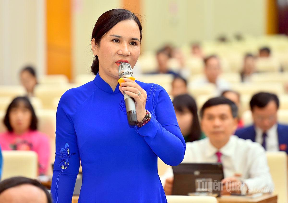 Giám đốc Sở Tài chính Phạm Kiều Vân phát biểu làm rõ các nội dung nghị quyết được xem xét tại kỳ họp.